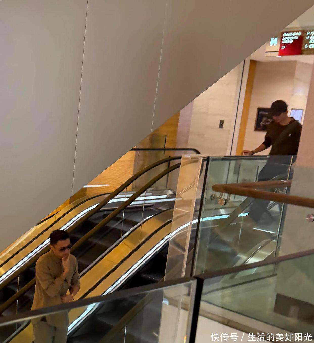 在香港置地广场的扶手电梯上,谢霆锋穿着一套卡其色的休闲装,戴着墨镜,步伐轻盈地走在前面,时不时回头看向身后的儿子。18岁的Lucas紧随其后,黑色棒球帽、全黑运动装搭配斜挎包,低调的穿着里透出与父亲如出一辙的明星气质。