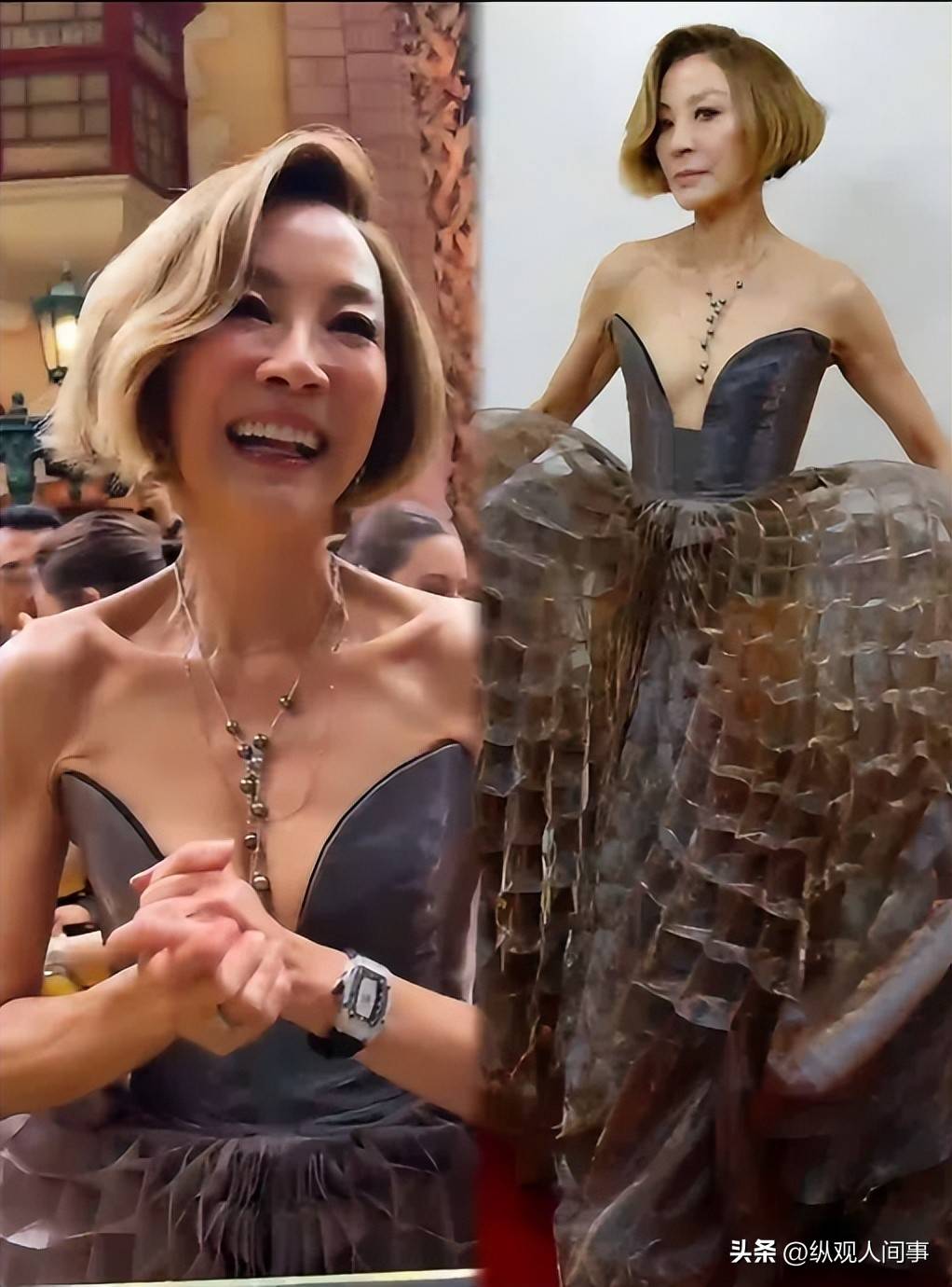 多年风雨兼程之后,杨紫琼在2023年凭借《瞬息全宇宙》成为首位获得奥斯卡最佳女主角的亚裔演员。那一年,她已60岁,站在领奖台上对全世界的女性说:不要让任何人定义你已过巅峰期,永远不要放弃。时至今日,她依然坚持自我风格,即便已63岁,开胸礼服依旧毫不畏惧,远超内娱一些所谓“性感女星”的大胆尝试。