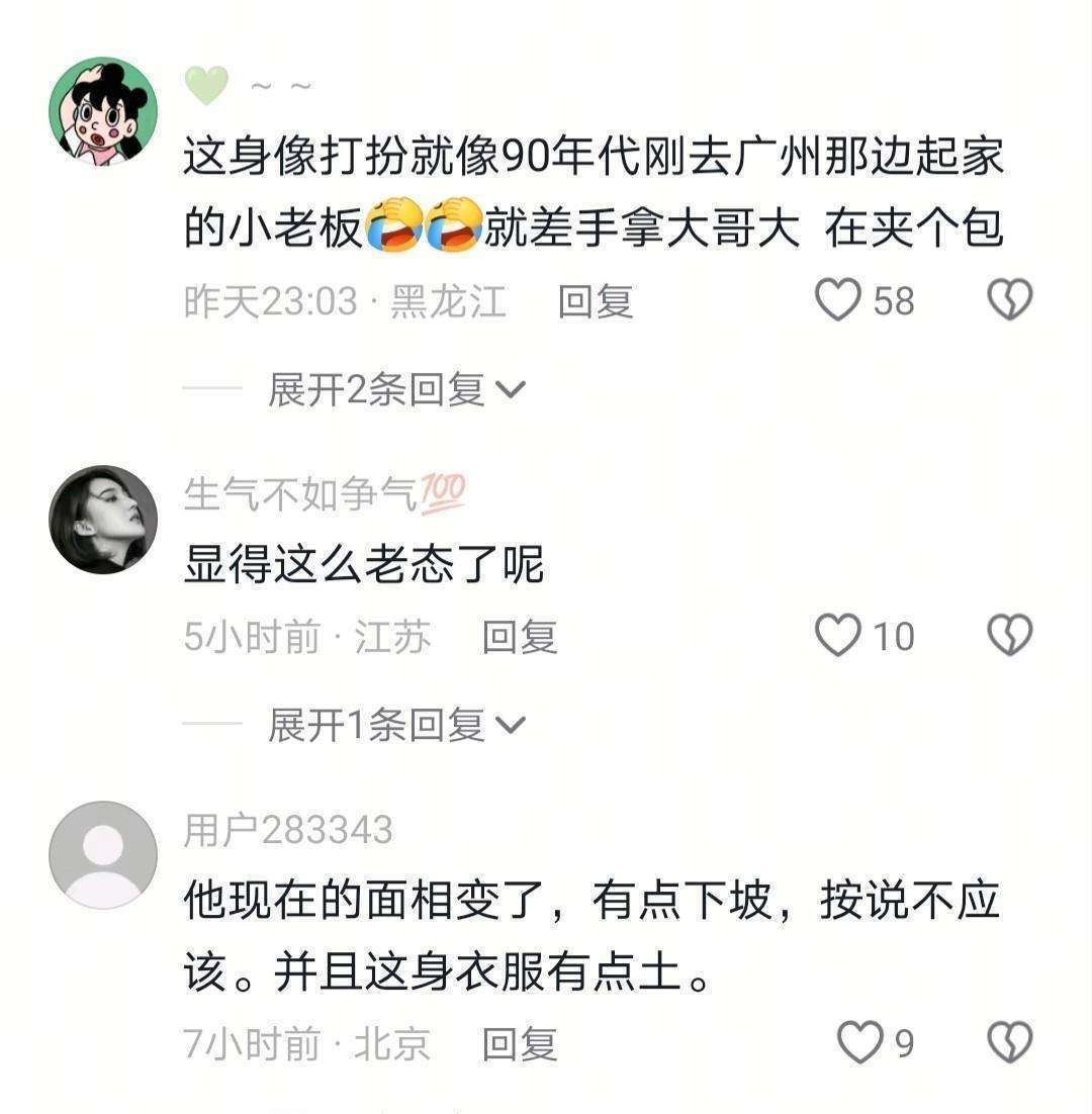 当然,也有网友注意到了细节,像花衬衫外四个扣子全部扣死,看上去就像是街头的皮鞋老板。头发倒是保持了少年感,但整体的气质却有些“沙漠化”。这种穿搭失误,通常并不是演员自己能决定的,造型师一定是起到了关键作用。