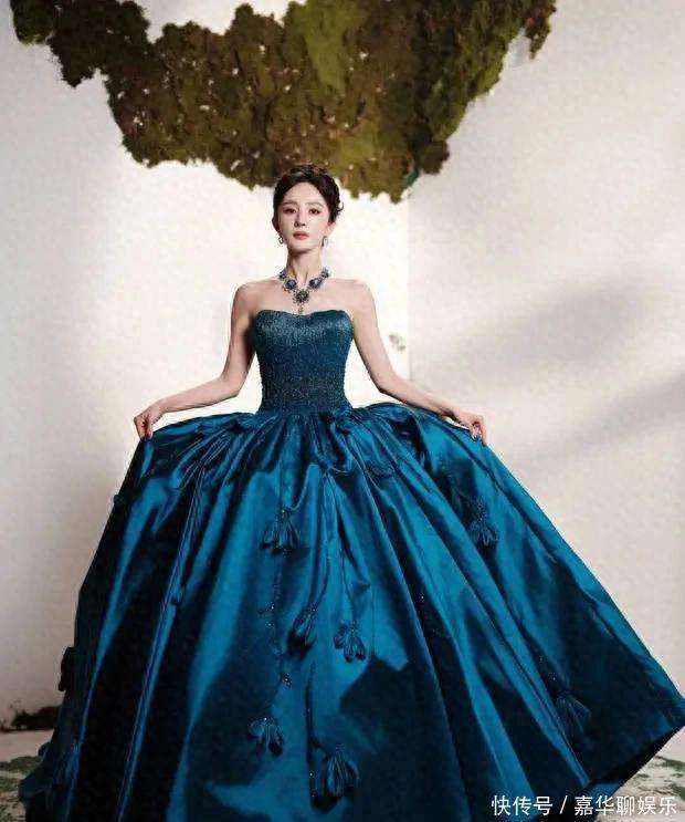 除了服装本身的亮眼设计,杨幂佩戴的Chopard(萧邦)Red Carpet高级珠宝系列更是点睛之笔。那颗大颗的蓝宝石项链与礼服的蓝色相互映衬,完美形成了深海般的色彩层次,令她看起来如同一幅宫廷油画。礼服的抹胸设计勾勒出她的直角肩和天鹅颈,再搭配蓬松的盘发与明艳的妆容,整体造型既展现了古典的优雅,又融入了现代的摩登感。