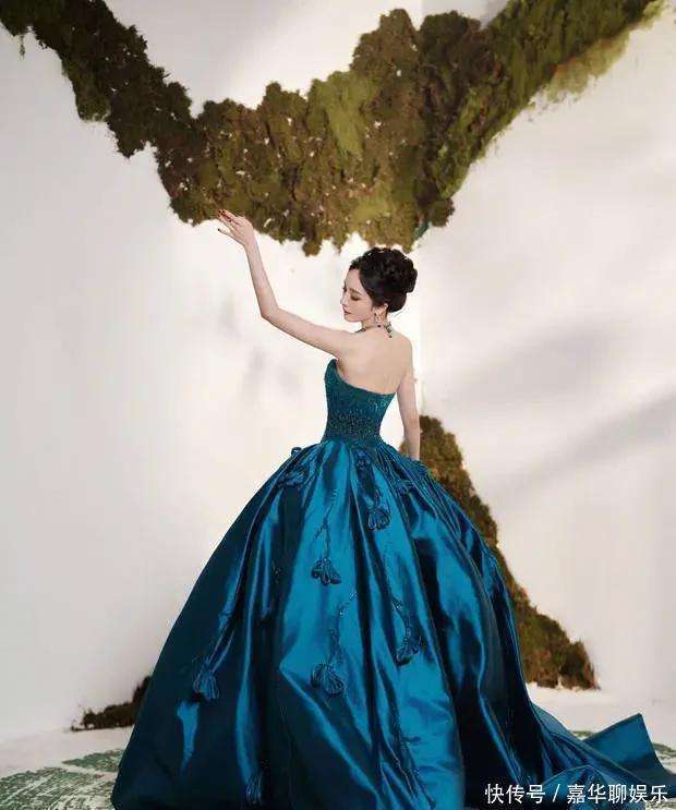 这件礼服的设计可谓精致至极,采用了渐变的蓝色金属光泽面料,并通过立体刺绣和水钻镶嵌,将孔雀羽毛的光泽感巧妙地呈现出来。尽管裙摆重达三十多斤,杨幂依然穿出了轻盈的飘逸效果,令人惊叹。设计师团队解释称,这条礼服被赋予了“会生长的裙子”这一概念,层叠的亮片与蝴蝶结饰带构成的拖尾轮廓,象征着生命力的蓬勃向上,行走时宛如孔雀开屏,成为动人的艺术展现。