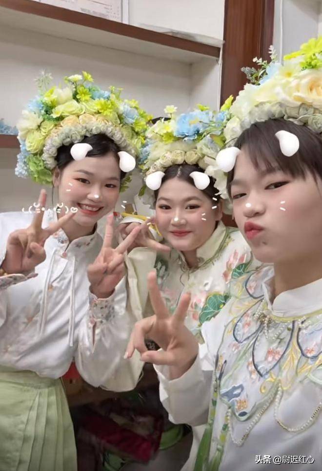 全红婵在社交平台上发的视频里,她们三个都打扮得很漂亮。