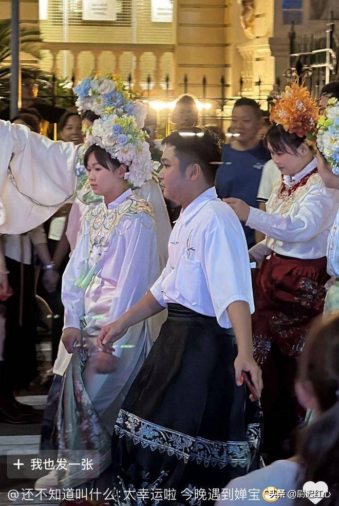 那个黑衣男子也穿上了马面裙,和全红婵的队伍很搭。