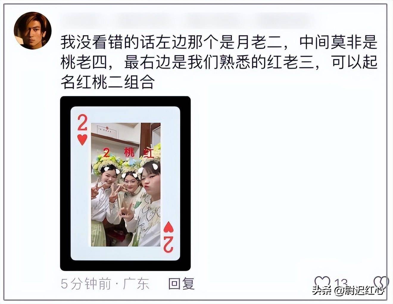 网友们对全红婵和她两个姐妹的组合非常感兴趣,还给他们起了个名字叫“红桃2”,这个别称挺有意思的,寓意着她们三姐妹就像扑克牌里的红桃2一样,既特别又引人注目。