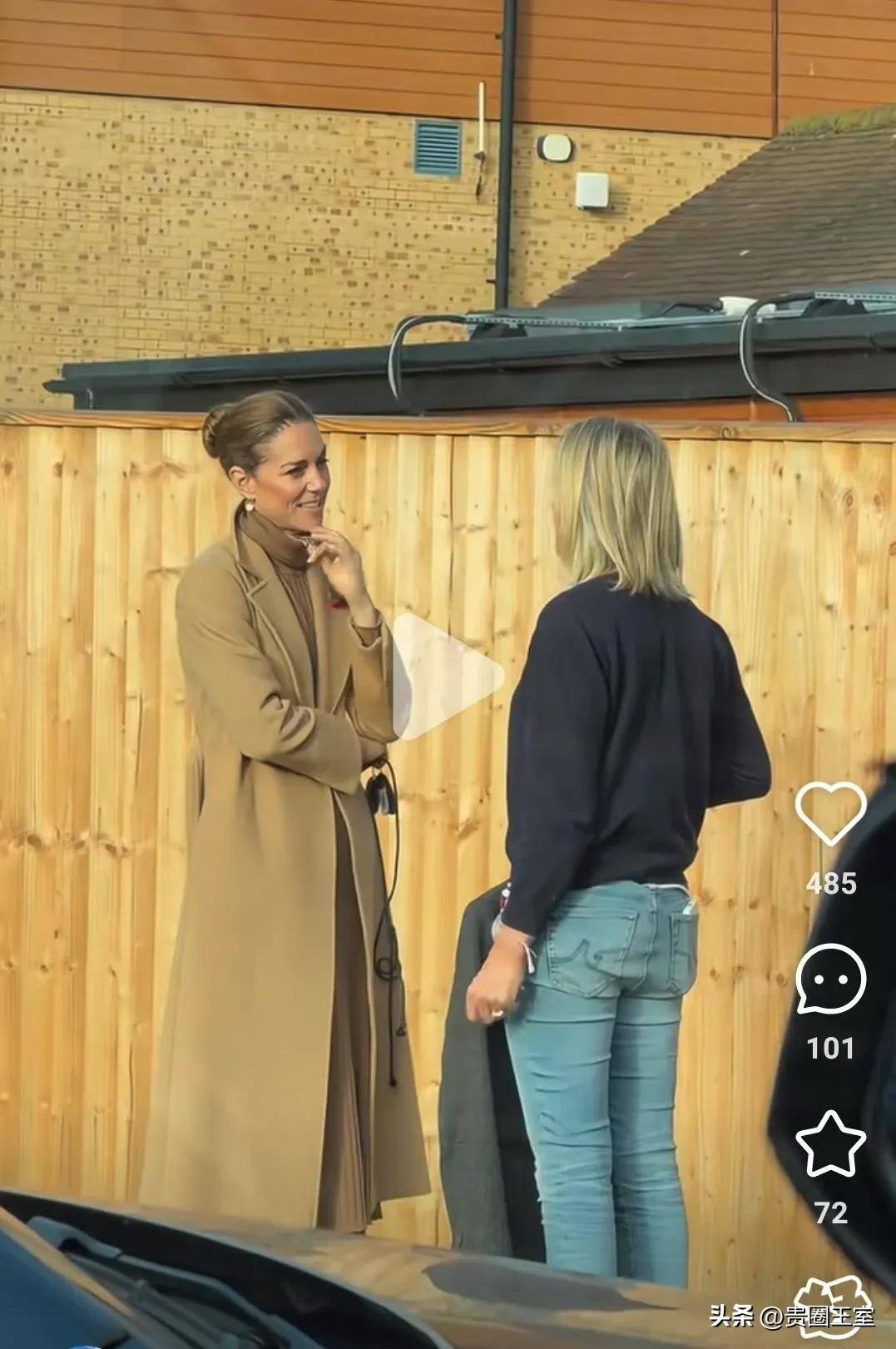 与此同时,王室粉丝们分享了一段凯特王妃接送孩子放学的私人视频。视频中,她穿着驼色大衣,搭配咖色针织衫和长裙,简洁大方的盘发造型依旧彰显了她一贯的优雅。虽然她的服饰风格与公务活动时相似,但私下的凯特显得更加放松自然,状态轻松愉悦。视频中的她与一位女士热情交谈,展现了她一贯亲民的作风。