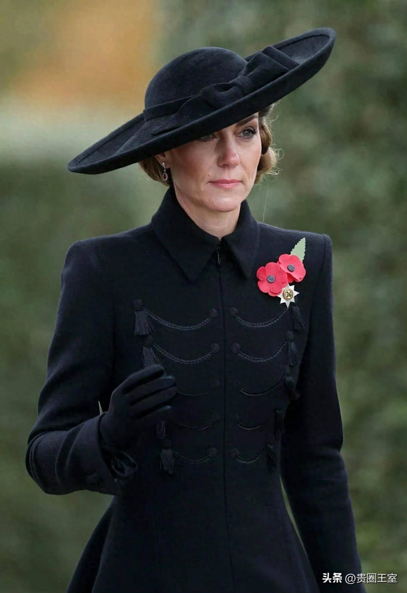 凯特王妃最近出席了一项重要的公务活动,当地时间11月11日,她出现在国家纪念植物园,参与停战日纪念仪式。当天,她身着黑色大衣裙,搭配一顶优雅的大礼帽,头发精致盘起,整个造型既高贵又大气。从活动照片中可以看出,凯特王妃的状态良好,神采奕奕。