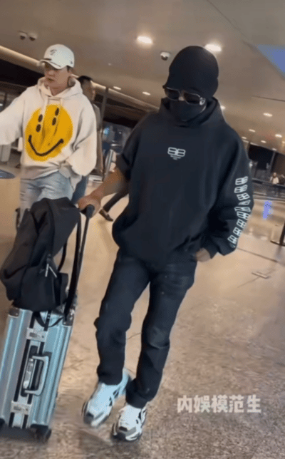 现身机场,一身的潮服,在一些网友比较专业的拍摄手法下,型男的感觉都出来了。