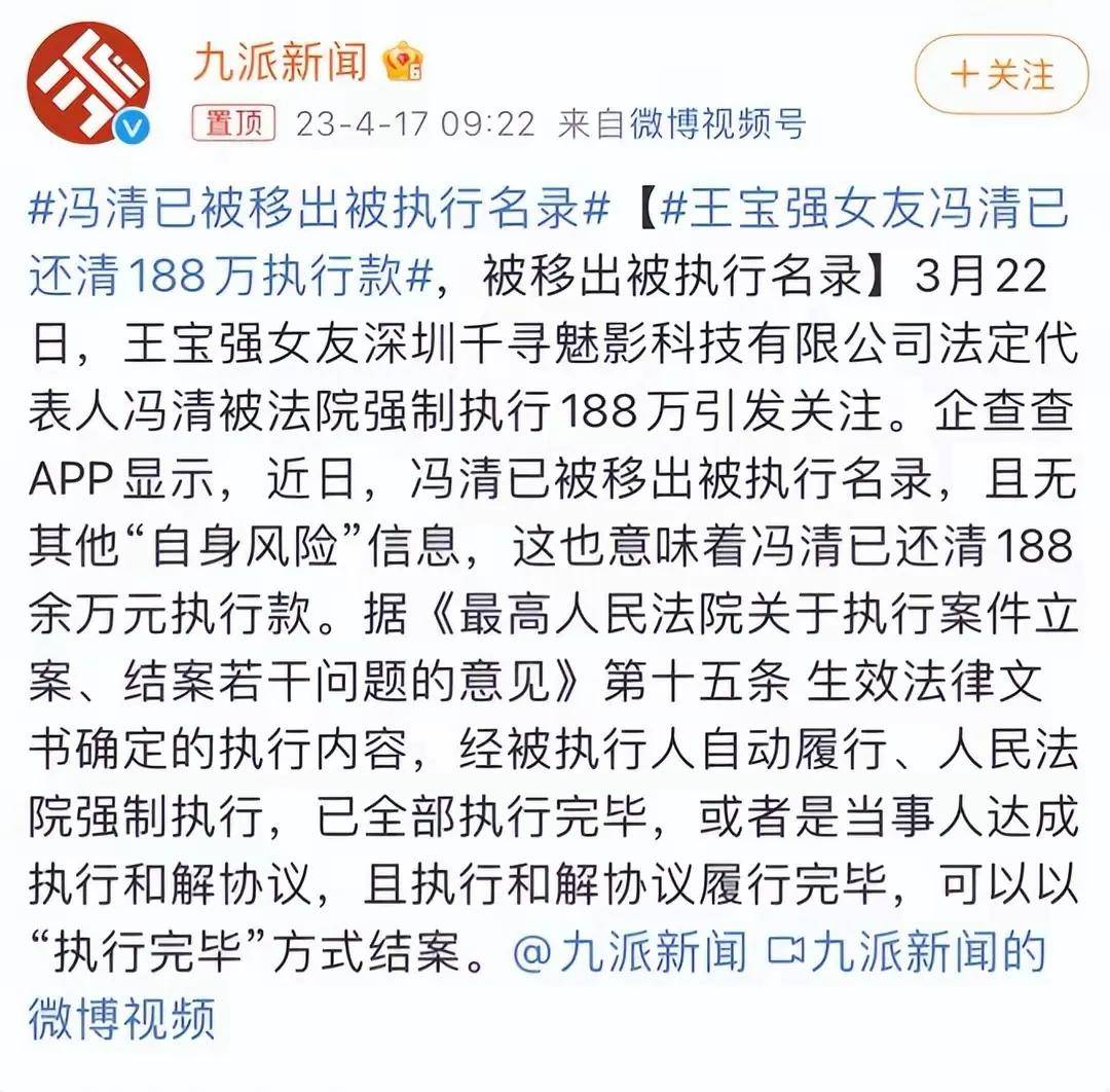 尤其冯清名下公司被强制执行188万的新闻一曝光,舆论哗然。