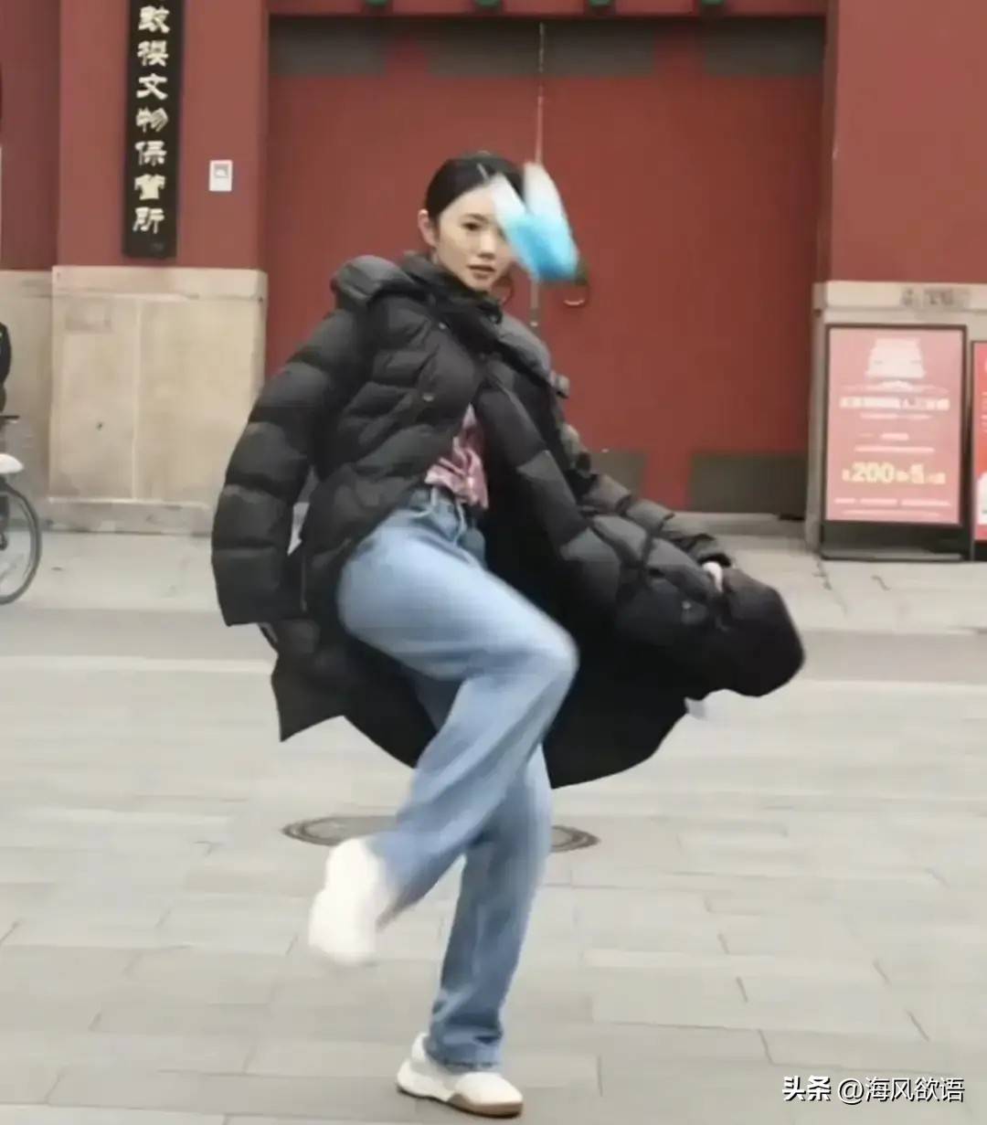 关键是跑动的时候,那双腿又细又直,线条流畅到离谱,不愧是北舞艺考第一的底子,连踢毽子的姿态都透着轻盈感。