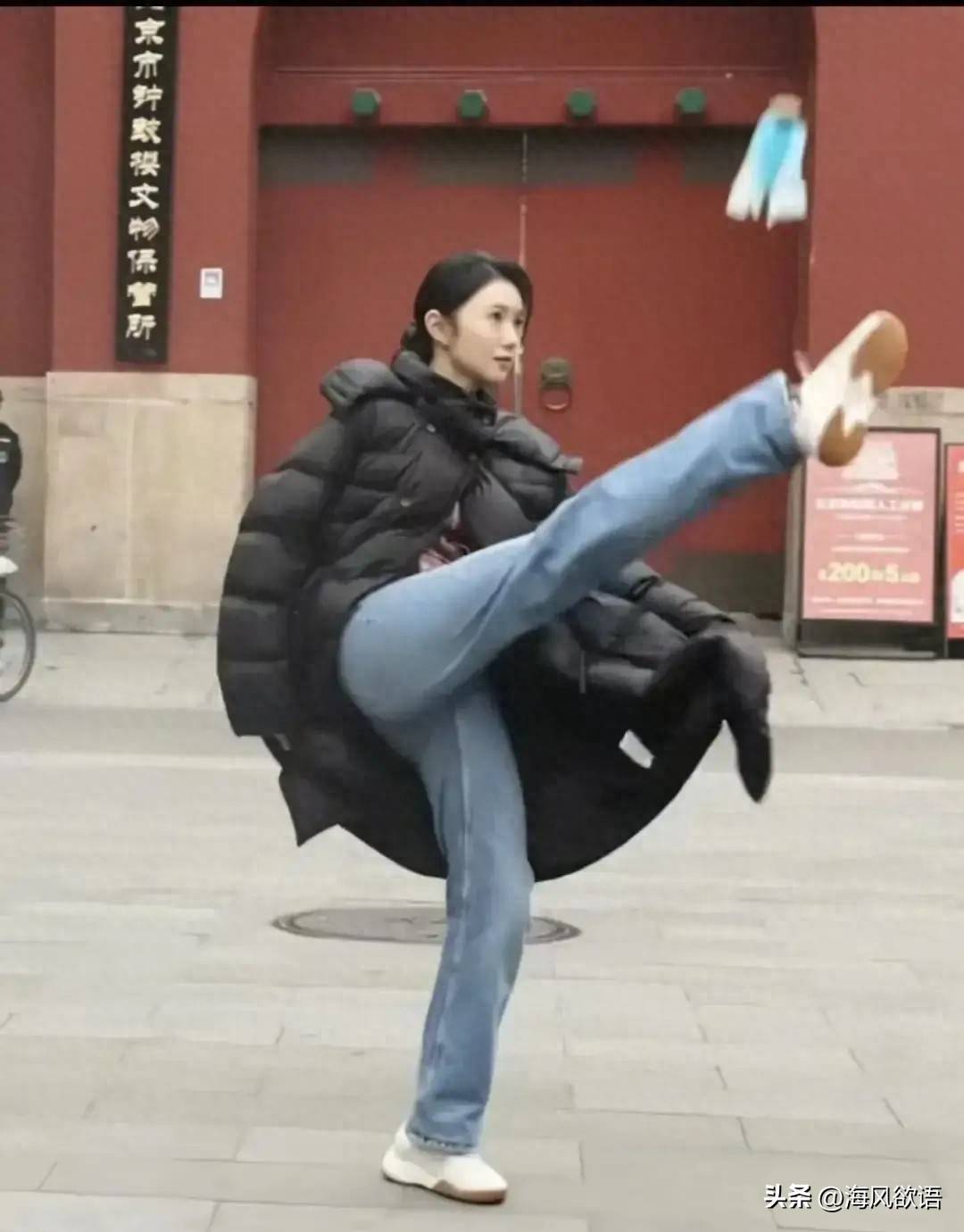 刘浩存拍戏间隙踢毽子被偶遇,这腿长真的要逆天了。