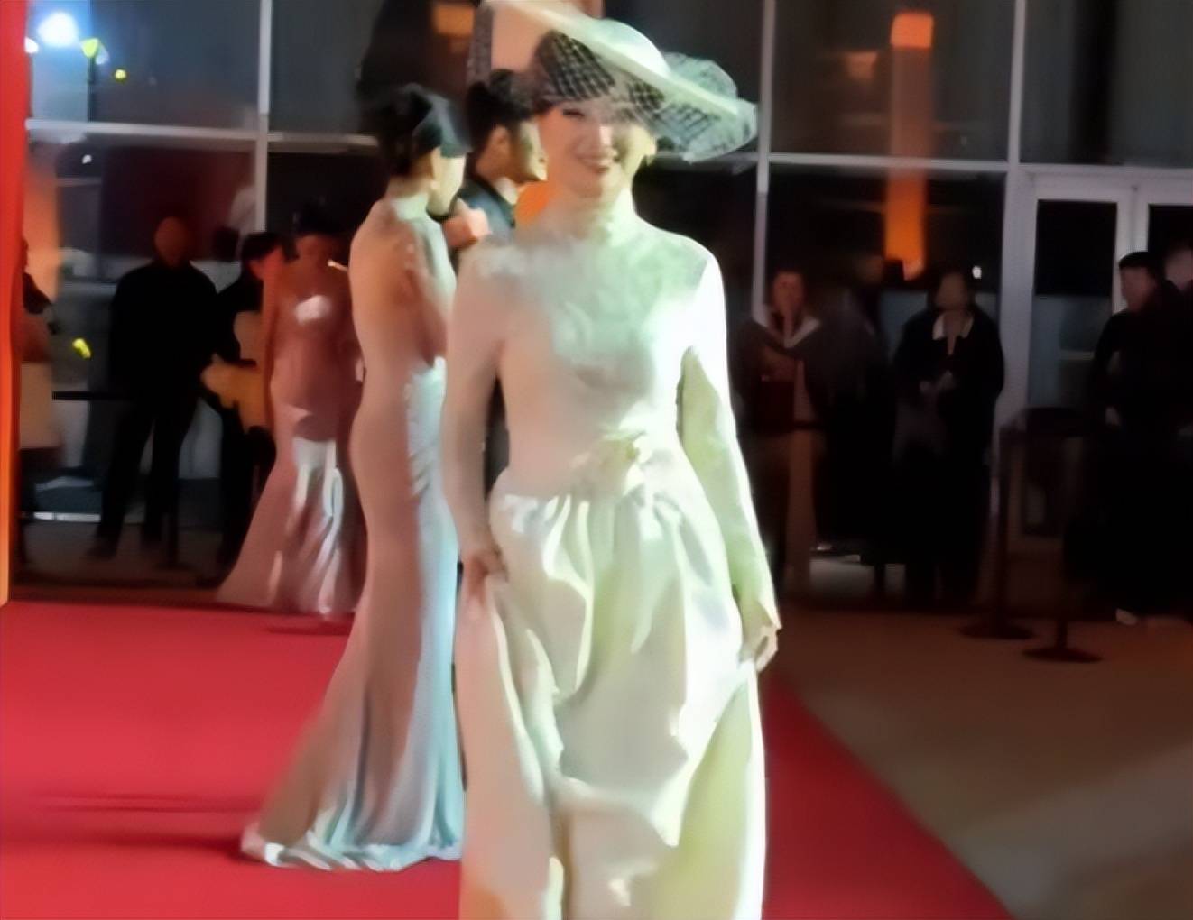 与这身高贵的礼服相搭配的,是一顶复古的小礼帽,巧妙地点缀了整体造型,增添了一份不言而喻的精致感。帽子的设计仿佛一笔画龙点睛,让赵雅芝的形象更具复古韵味。戴上它的她,不再是一个单纯的明星,而是仿佛从某部经典老电影里走出来的绝世佳人,举手投足间流露出的气质,令人瞬间感受到时光的洗礼与岁月的厚重。