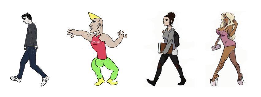 incel概念粗暴地将男性女性分成了四种:Virgin处男非自愿单身者、Chad粗野肌肉男、Becky受过教育的丑女、Stacy白痴美女。