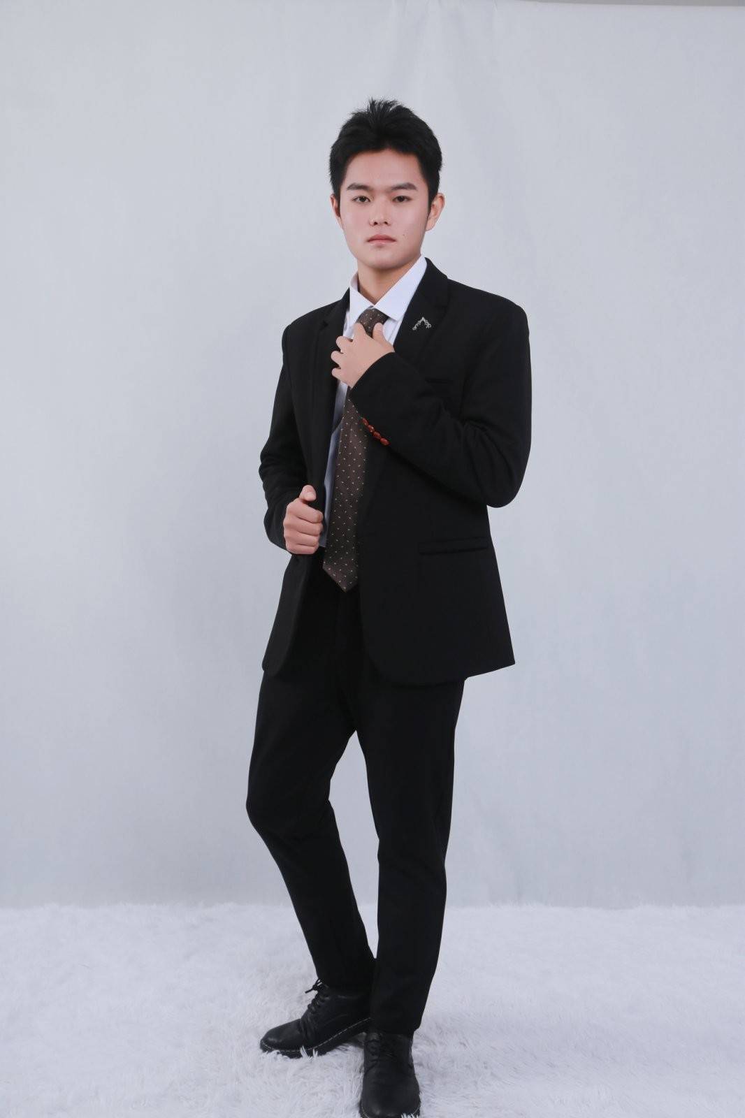 而当黑色西装套在他身上时,又跳出了另一种可能性。没有老派正装的刻板,白衬衫领口微敞,领带松垮地系着,胸针的银质光泽落在驳领上,像刚结束学生会会议、急着赶去球场的学长 —— 正装的正式被他的少年气柔化,变成了轻熟感的过渡态。这恰恰是职场装、轻商务品牌需要的气质:既撑得起场合的体面,又不会让年轻群体觉得老气,是少年初长成的细腻分寸。