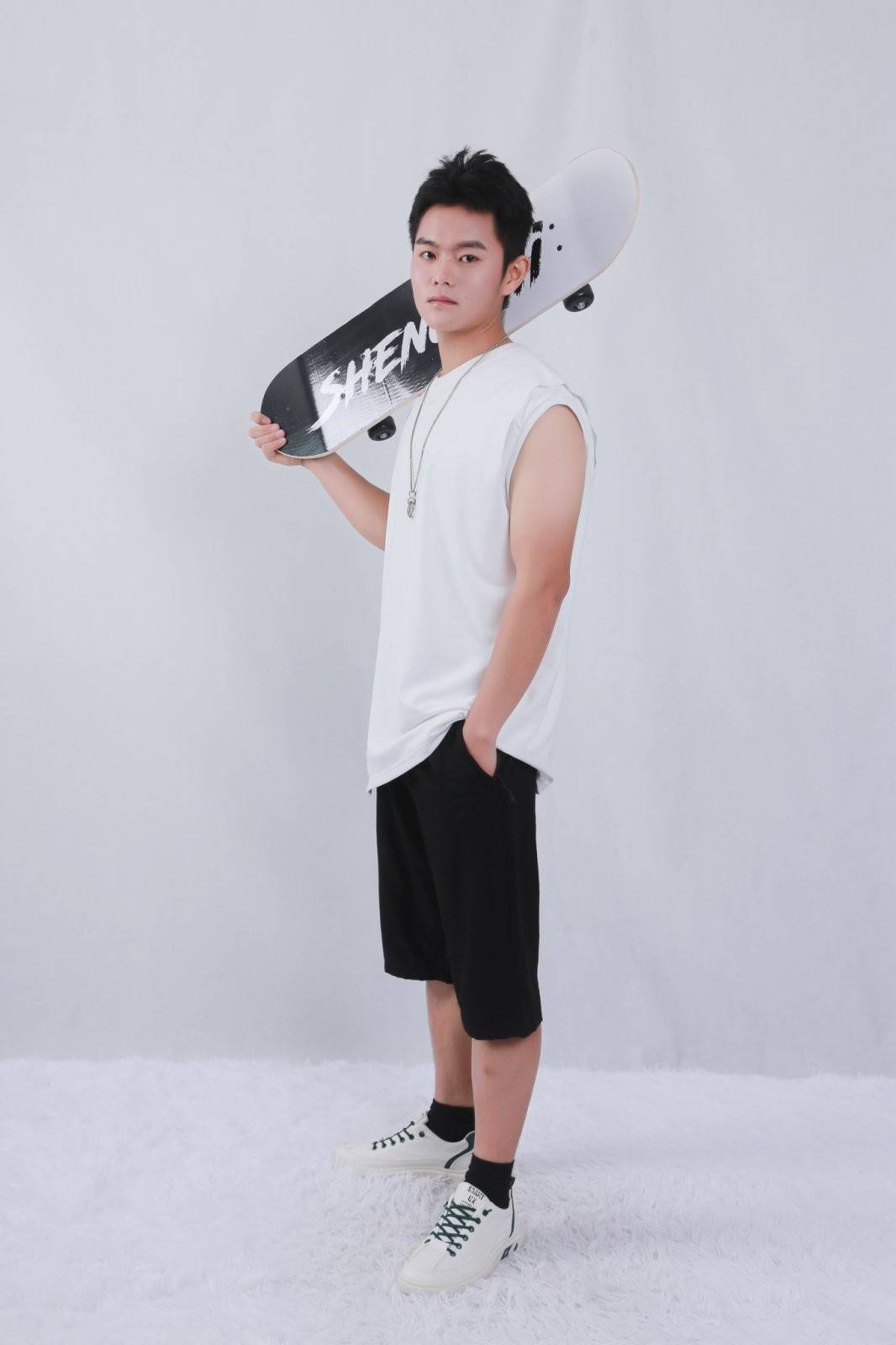 他的优势,从来不是完美身材的模板化,而是穿什么像什么的共情力:穿休闲装时,是你我身边会碰到的舒适系男生,牛仔布料的褶皱、T 恤下摆的弧度,都透着生活里的真实;穿街头风时,滑板的棱角、无袖衫露出的手臂线条,又带着少年不服输的锐利;穿运动装时,是操场边会被偷瞄的阳光型,汗水还没浸湿衣料,就先透出蓬勃的生命力;穿正装时,是带着青涩的潜力股,西装的挺括里裹着没褪去的少年气,反而比成熟模特多了成长感。