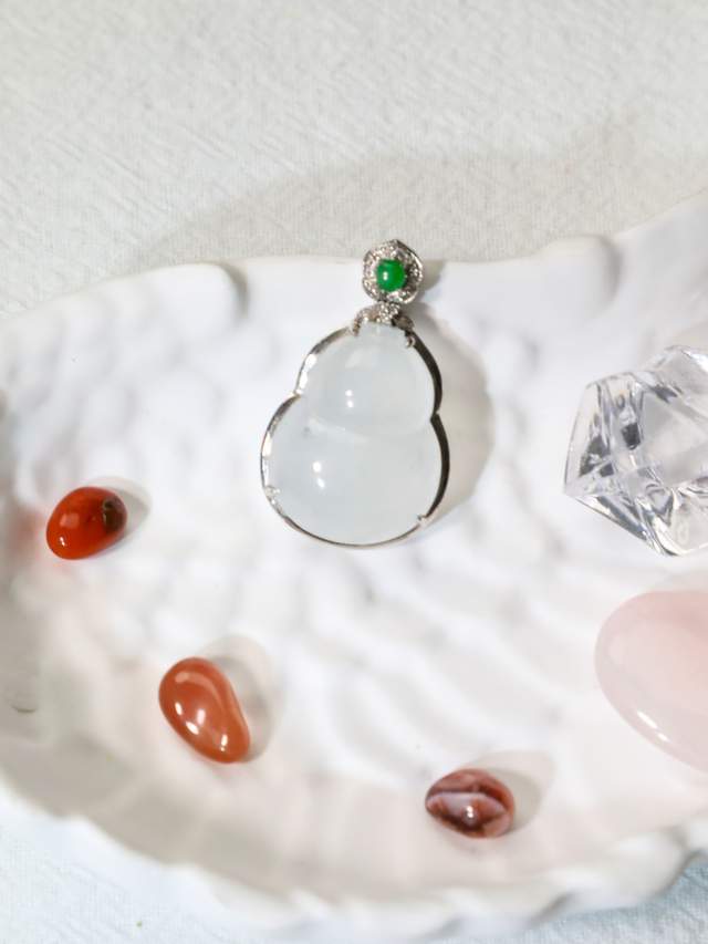 在搭配上,翡翠白冰葫芦吊坠更是展现出了它的百搭魅力。无论是搭配简约的白衬衫,还是与华丽的晚礼服相伴,它都能完美胜任,成为整个造型的点睛之笔。