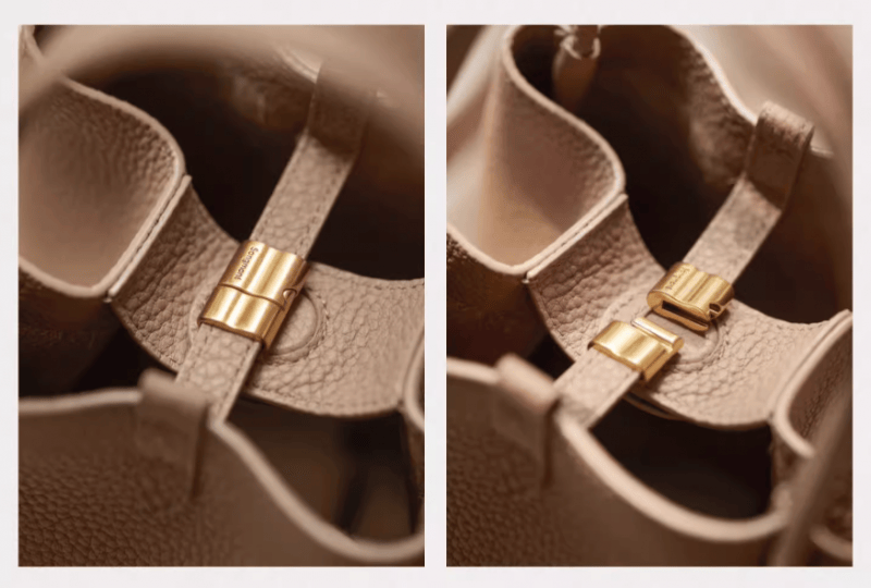 在2-3k千元价格带内,于佩尔同款菜篮子包以其“无界切换”的设计理念,成为通勤与休闲场景下的全能选择。甄选全粒面头层摔纹牛皮,以2.5mm以上厚度的进口原皮,经过古法木桶工艺处理,赋予包身立体的质感与饱满柔软的手感,确保了其“软而不塌”的挺括造型。细节处更见匠心,行业标准之上的304不锈钢五金,采用首饰级真金真空电镀,不仅光泽耐久,其耐磨性更是远超寻常,为包袋的整体品质保驾护航。