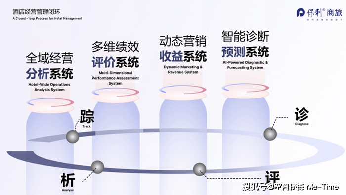由保利商旅研发的“酒店数智管理决策平台”,正是这套阳澄半岛英迪格使用的这套系统背后的支持者。它通过经营分析、绩效评价、营销收益、诊断预测四大板块,构建了一个“可视化、能追踪、强闭环”的管理生态。