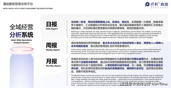 在酒店行业从“增量扩张”迈向“存量运营”的背景下,传统依赖经验的粗放式管理已难以满足精细化运营的需求。 保利商旅研发的“酒店数智管理决策平台”应运而生,通过数据驱动的方式,解决行业痛点,为酒店管理提供了全新解决方案。