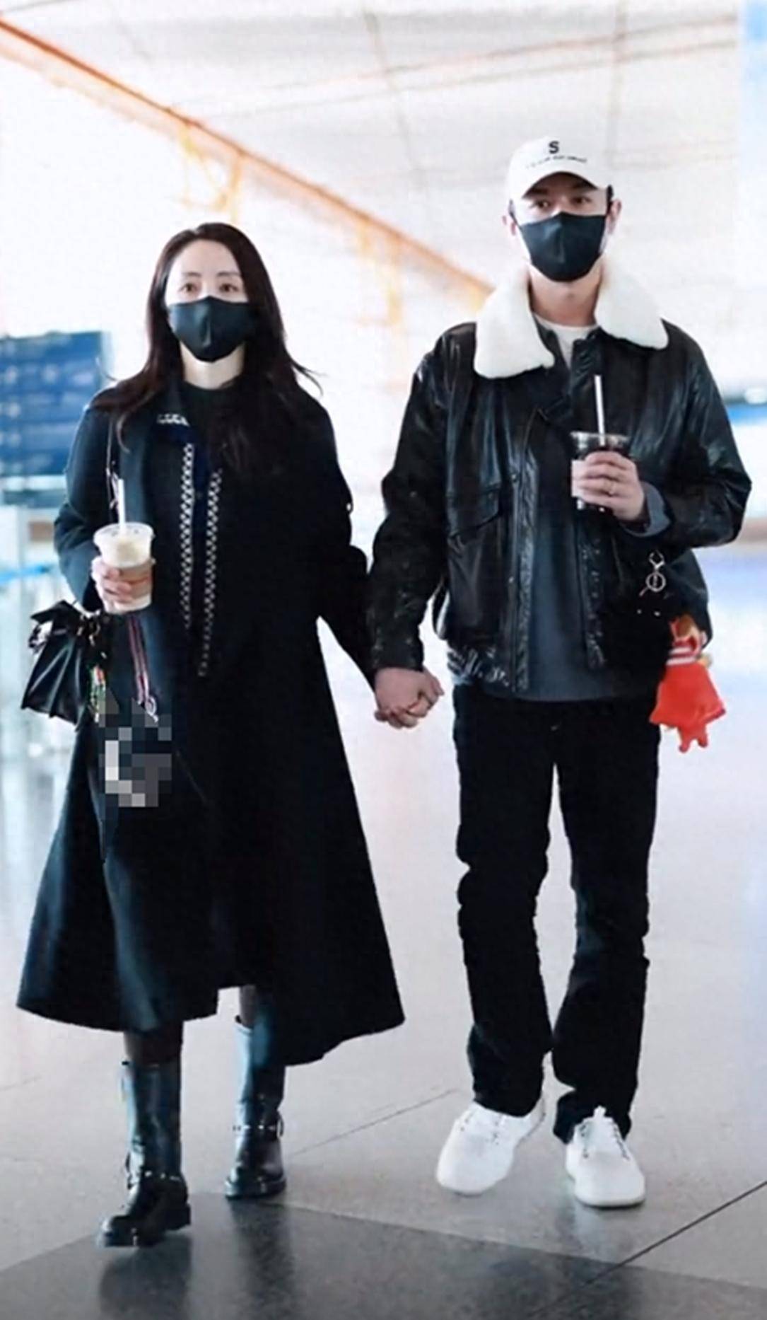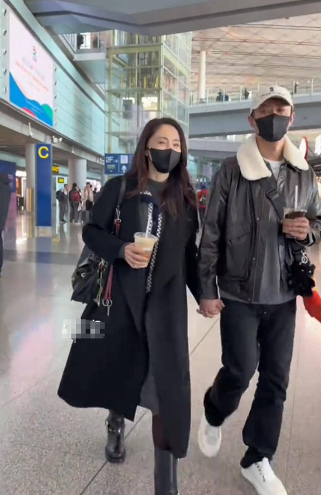 两人不约而同选择了黑色系穿搭,乍看还以为提前商量好了情侣装扮。尽管手里都拿着咖啡,交握的双手却始终没有分开,这般如胶似漆的模样,完全看不出是结婚近一年的夫妻,倒像是正在热恋期的小情侣。