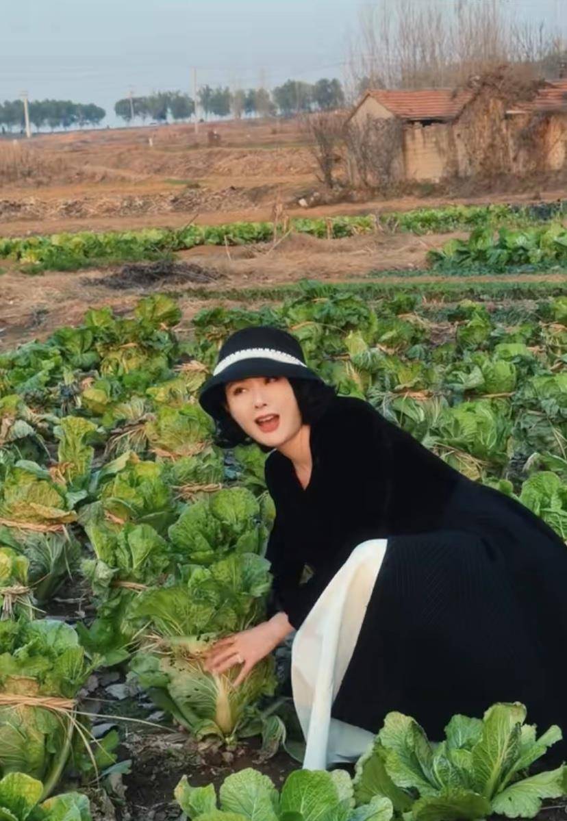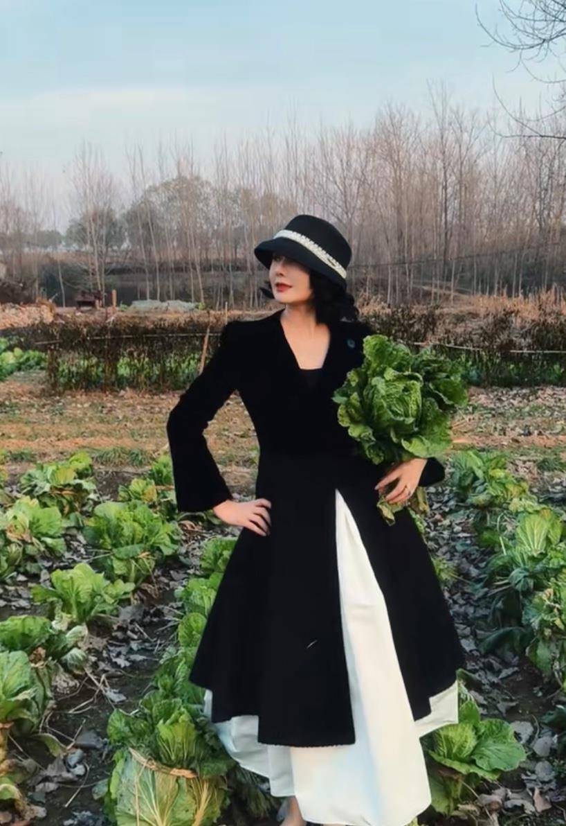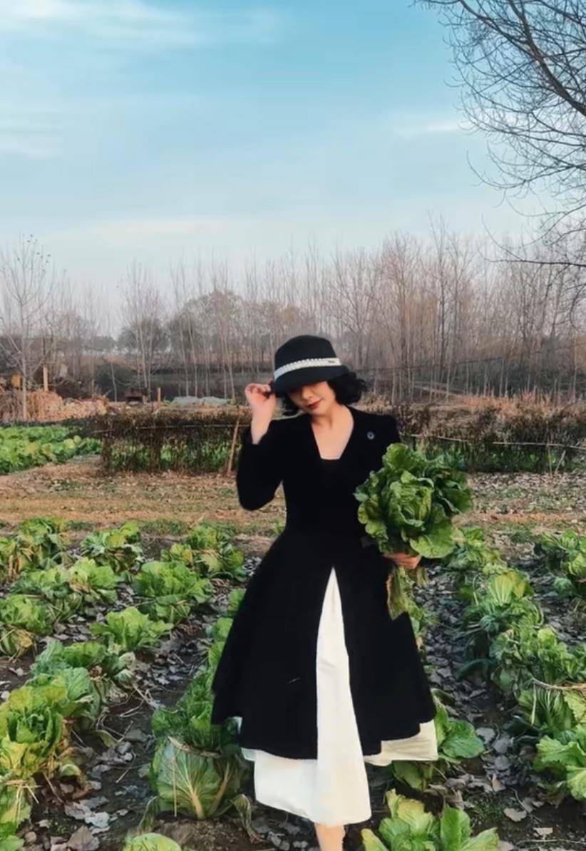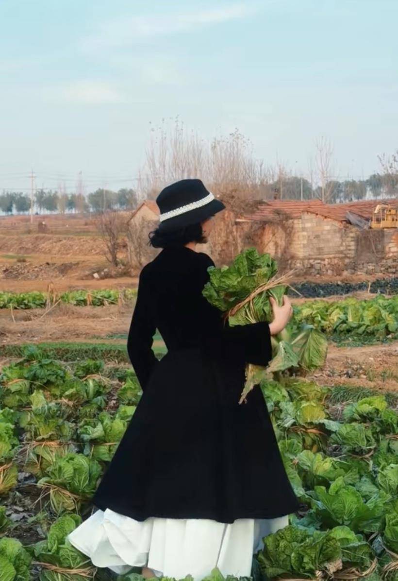 长得漂亮,打扮得体,气质极佳,就算背景是村庄,身边堆满白菜,周围一片泥土,依然像拍摄的大片一样有范儿。