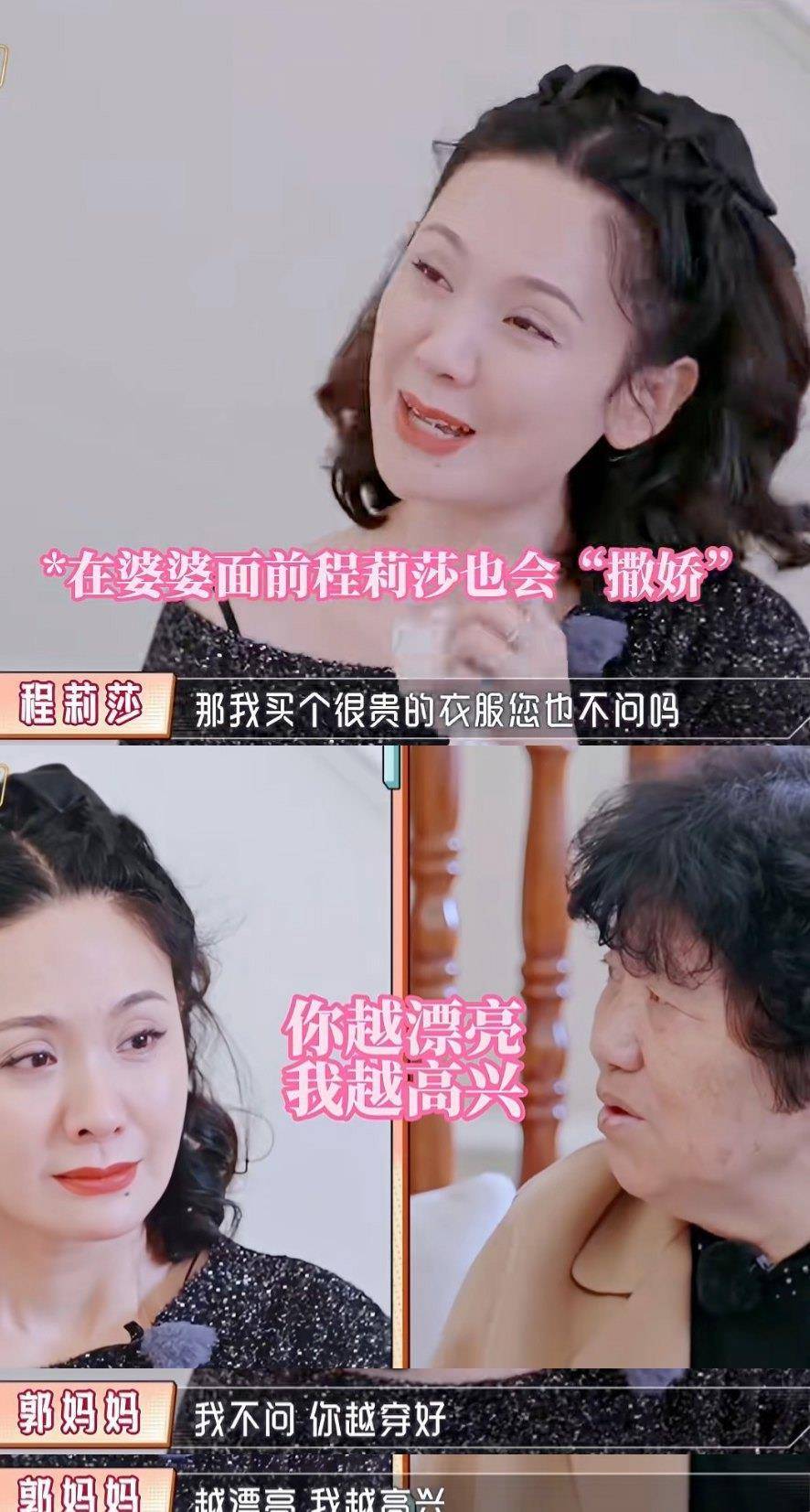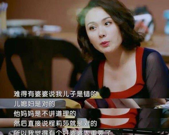 看这段话,挺明显的,程莉莎遇到了个挺好的婆婆,至少这会儿没啥怨言。她自己还在节目里感叹过:“我婆婆不讲理。”