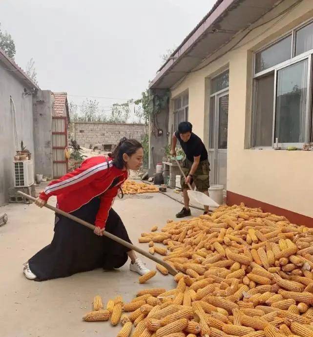其实,程莉莎经常会回农村婆婆家待一段时间,农忙的时候,她还会和郭晓东一起回去帮忙收玉米。