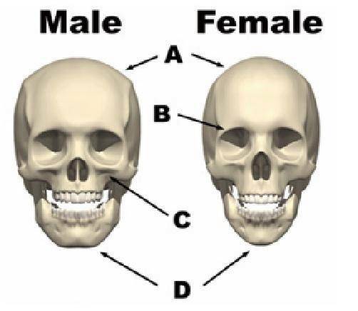 男性的颧骨比女性的更加明显和突点, 表现在脸型上有比较明显的转折。