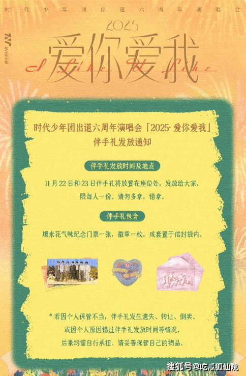 粉丝们在收到六周年伴手礼后,纷纷在社交媒体上分享自己的喜悦。“这份伴手礼太用心了,每一个细节都能感受到时代少年团对我们的爱”“六周年的伴手礼真的是宝藏,要好好珍藏起来”,满屏都是对伴手礼的称赞与喜爱。这份伴手礼不仅是时代少年团对六周年的纪念,更是他们与粉丝之间深厚情感的见证。相信在未来的日子里,时代少年团会继续与粉丝携手前行,创造更多美好的回忆。