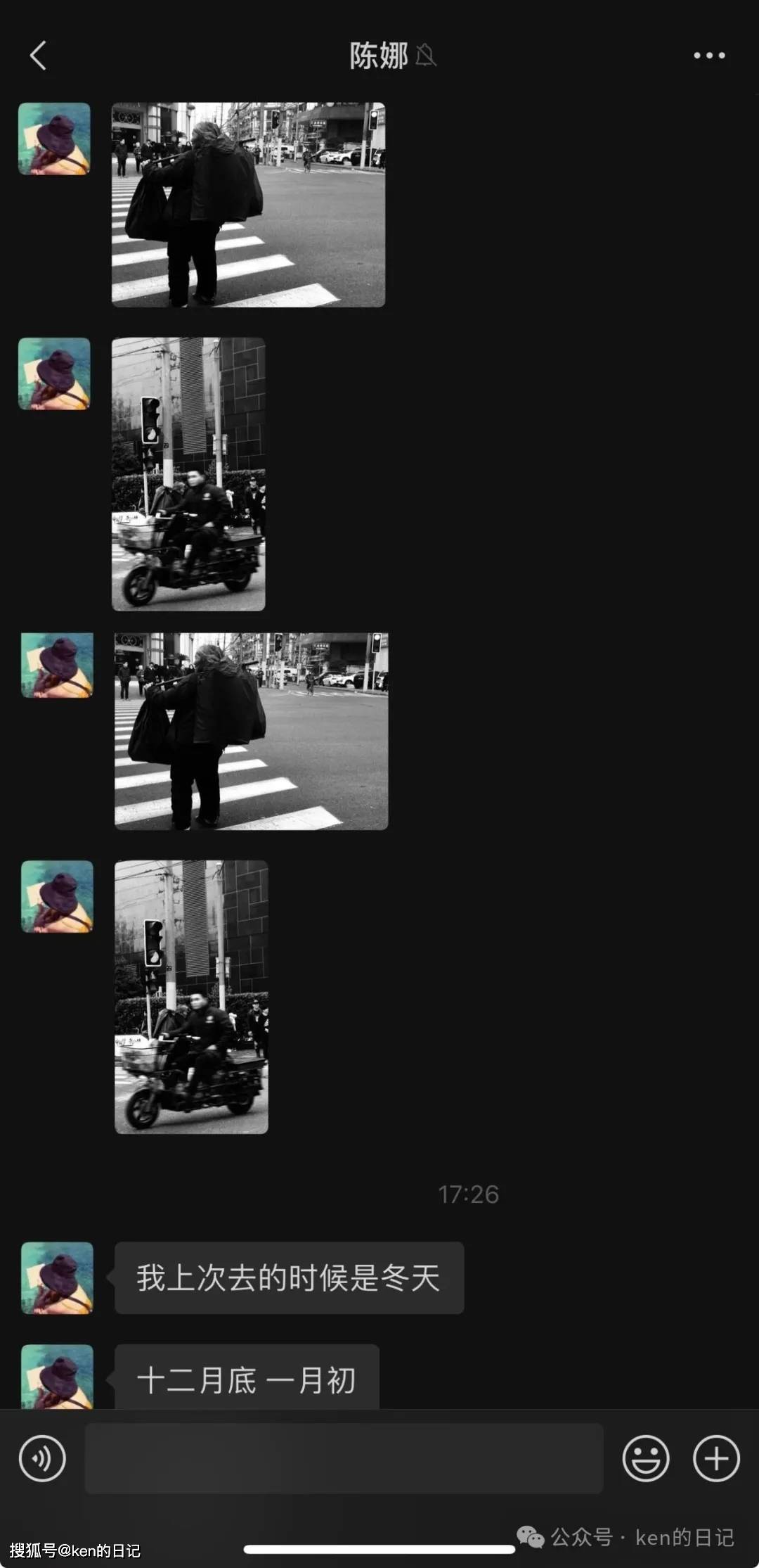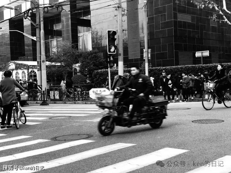 随后陈娜继续发来一张黑白色调的照片,这张照片应该是在拍一个外卖员骑行电瓶车过马路的场景,陈娜还发语音过来尽力的去解释自己拍照,并且觉得好像自己拍的照有点猥琐或者什么,但是什么什么的,最后就是说大城市啊,每个人都有每个人的生活嘛。