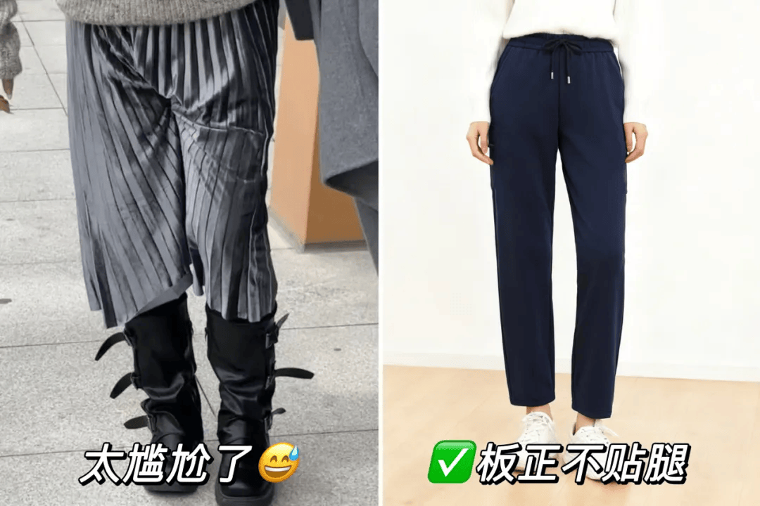 上半身还好,羽绒服一件顶一冬。但下半身穿多了走不动,显腿粗;穿少了又冻得打哆嗦。