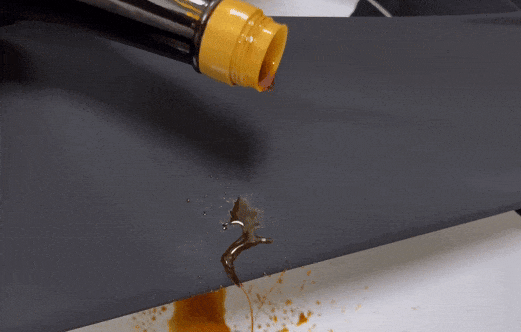 拿酱油泼上去,也是呲溜一下,不留痕。