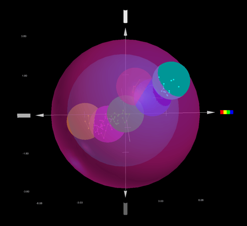 此外,一致的视觉接受性并不意味着颜色空间中的差异是均匀分布的。ΔEcmc 公式通过计算不同颜色区域中椭球体的尺寸和比例,来反映此类视觉差异。例如,在颜色较为明亮或鲜艳的区域,ΔEcmc 椭球体体积较大、椭圆度较高;而在颜色较为暗淡或不鲜明的区域,情况则相反。因此,当前建议将 ΔLcmc、ΔCcmc 与 ΔHcmc 作为 555 分色的三个坐标维度。