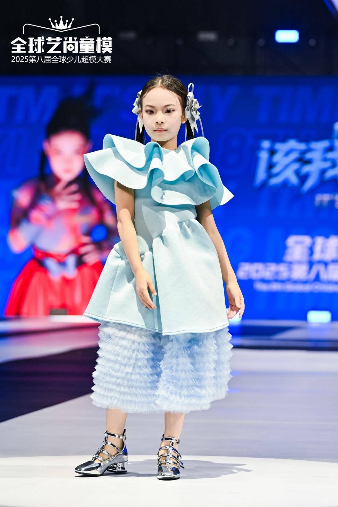 赵一霖登场自带清新氛围感!浅蓝造型层次丰富,荷叶边与蓬蓬裙摆轻盈灵动,一亮相便抓住全场目光;精致的剪裁衬出优雅身姿,搭配亮眼的鞋子,更是将时尚感拉满,举手、迈步间尽是小淑女的灵动风采。