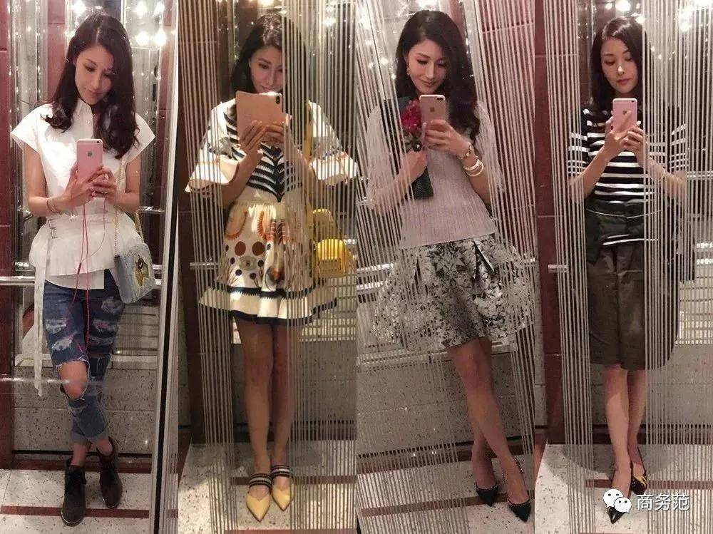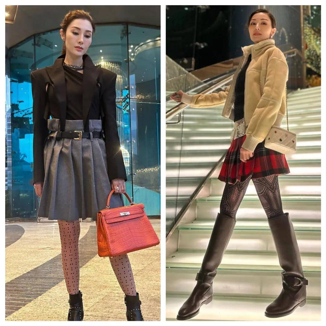 卫衣配半裙时,外面也一定要加一件贵妇风皮草马甲,李嘉欣更不忘蹬着花里胡哨的长靴;许晋亨也是格纹西装配花哨的领带~