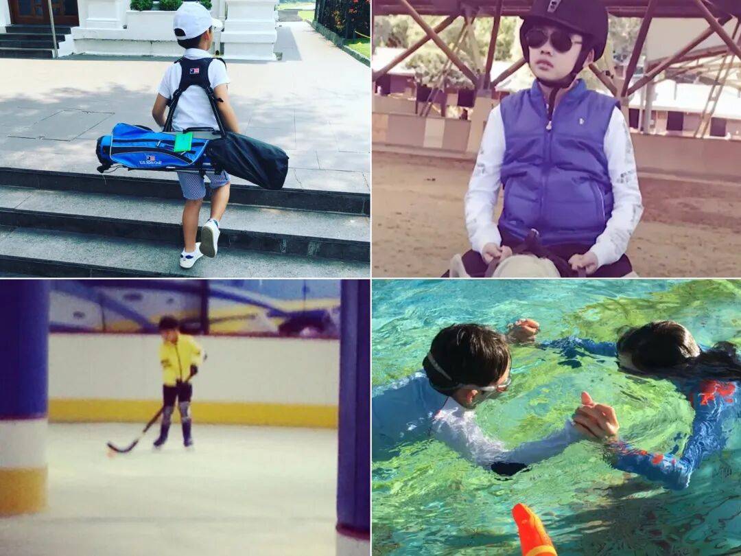 今年14岁的许建彤,不但琴棋书画样样精通。马术、攀岩、潜水、滑雪、冰球等运动也玩很溜,5岁多就背着高尔夫球包去参加比赛,连一向严苛的港媒都赞他是“十项全能”。