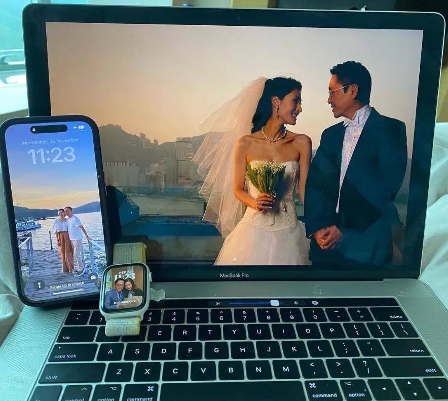 李嘉欣之前晒出的苹果三件套中,每张壁纸都是两人的合照。感觉许晋亨的“功能性”极强,妥妥的幸福豪门生活必备“道具”。