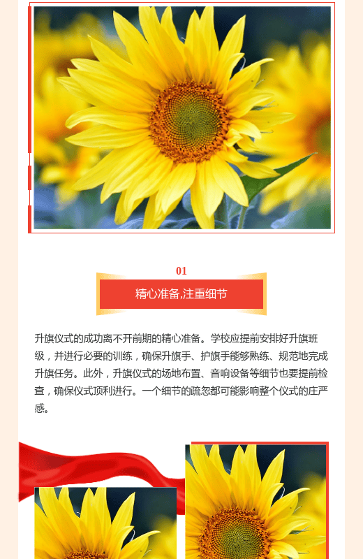 还在为如何通过排版传达青春正能量而发愁吗?很多学校在制作升旗仪式推文时,常常陷入元素堆砌却抓不住视觉焦点的困境。教育系统广泛应用的国旗红、五角星黄金比设计,配合展翅白鸽和半开书本的版式组合,搭配飘动红绸带的视觉引导线,正是让青少年主题报道脱颖而出的关键诀窍。跟着这个被100+学校验证过的版面公式做,图文打开率半小时就能提升30%。