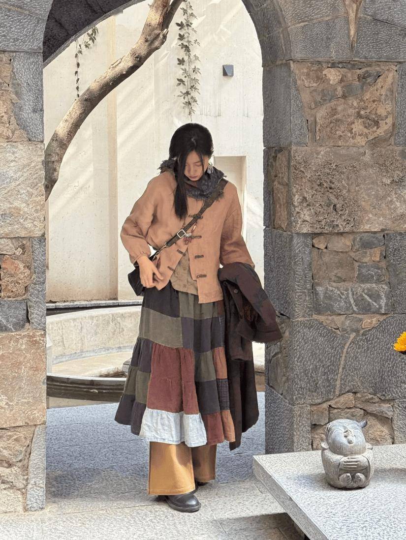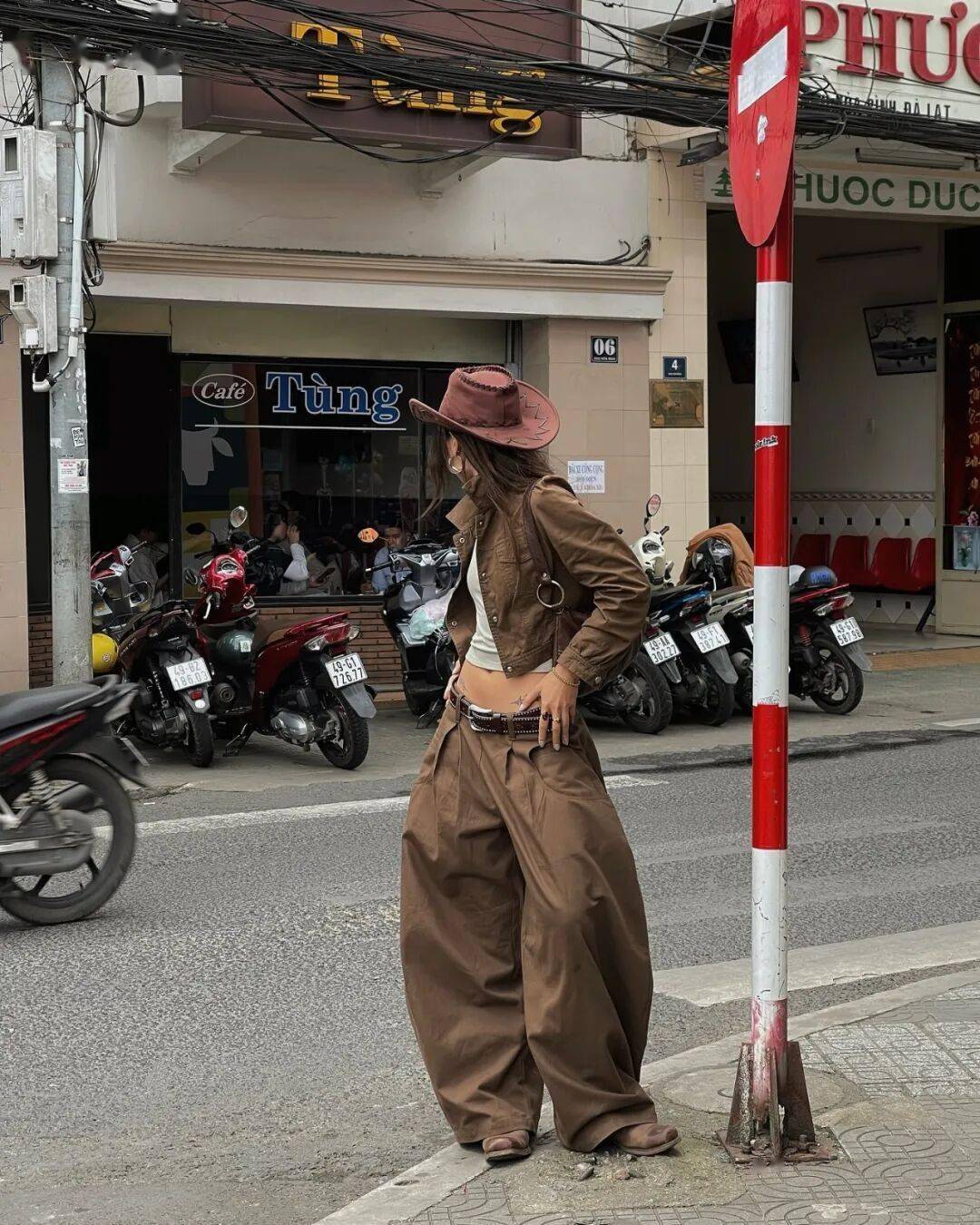 都市游牧风的美,也可以靠细节塑造。随性的系结设计给人一种“随时启程”的灵动感,复古质感则为造型添置一份沉稳的故事底蕴。两者结合的魅力在于,衣服无需复杂,却能在细节中散发出一丝自由之气,而这也是都市游牧风最耐人寻味的部分。