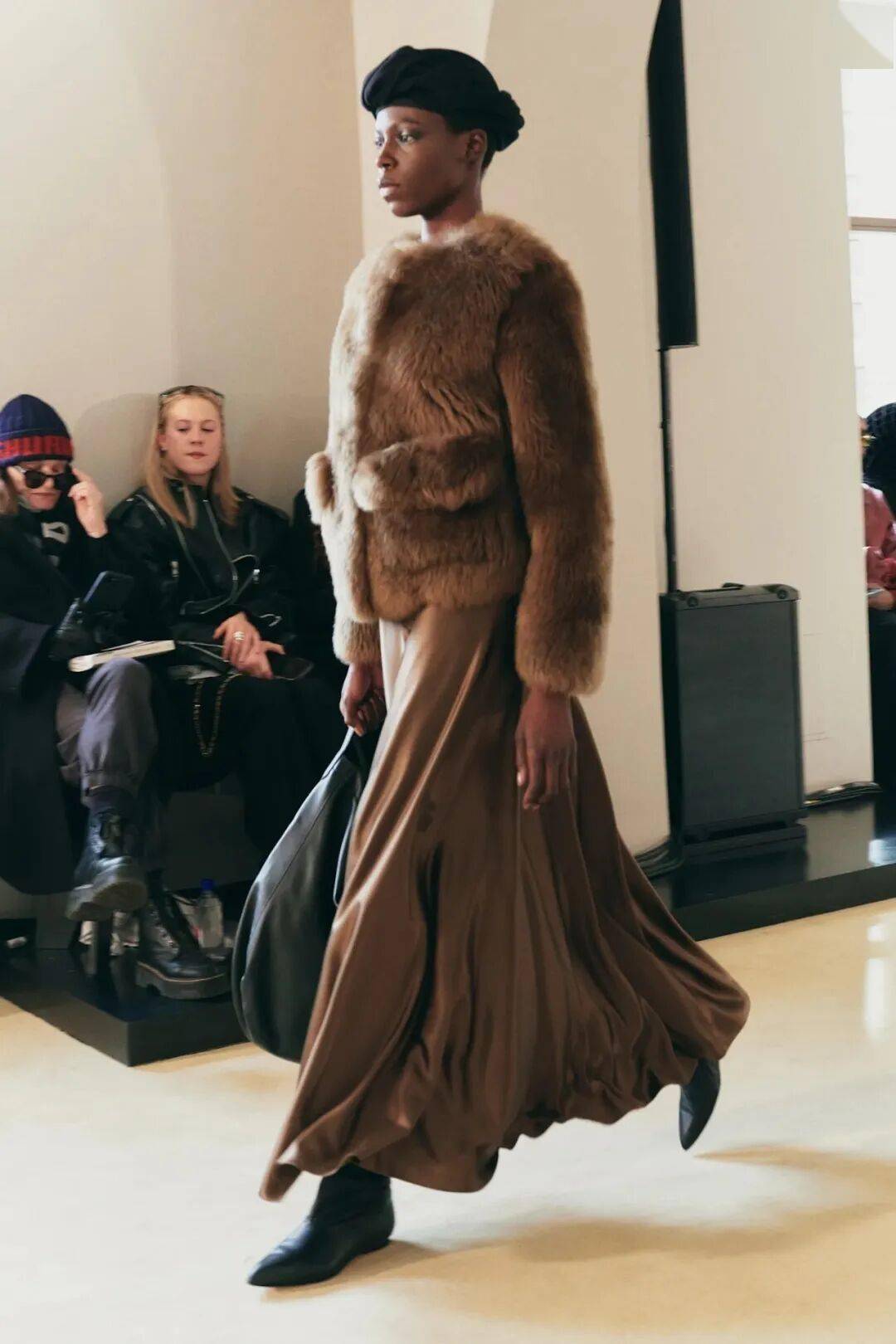 Altuzarra 2025秋冬系列同样延续从文学中汲取灵感的传统,以更具情绪密度的方式呈现女性视角。通过流动的褶皱、结构化外套与毛绒元素的碰撞传递荒野的浪漫气息,将都市的现代摩登与游牧的旷野之美自然衔接。