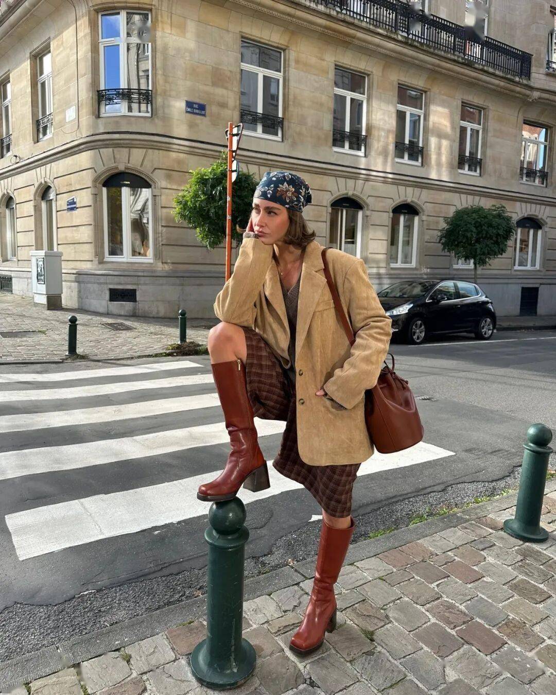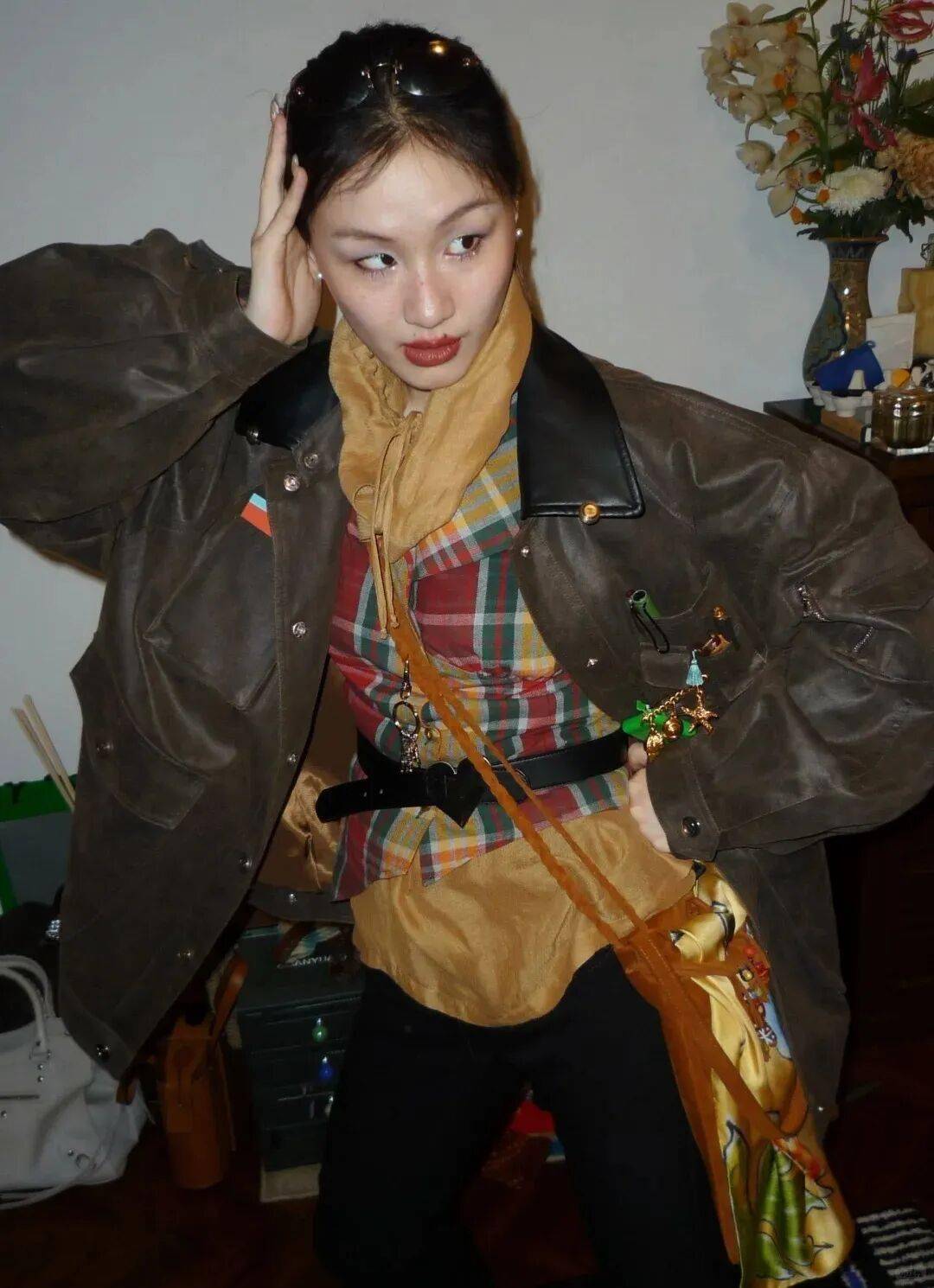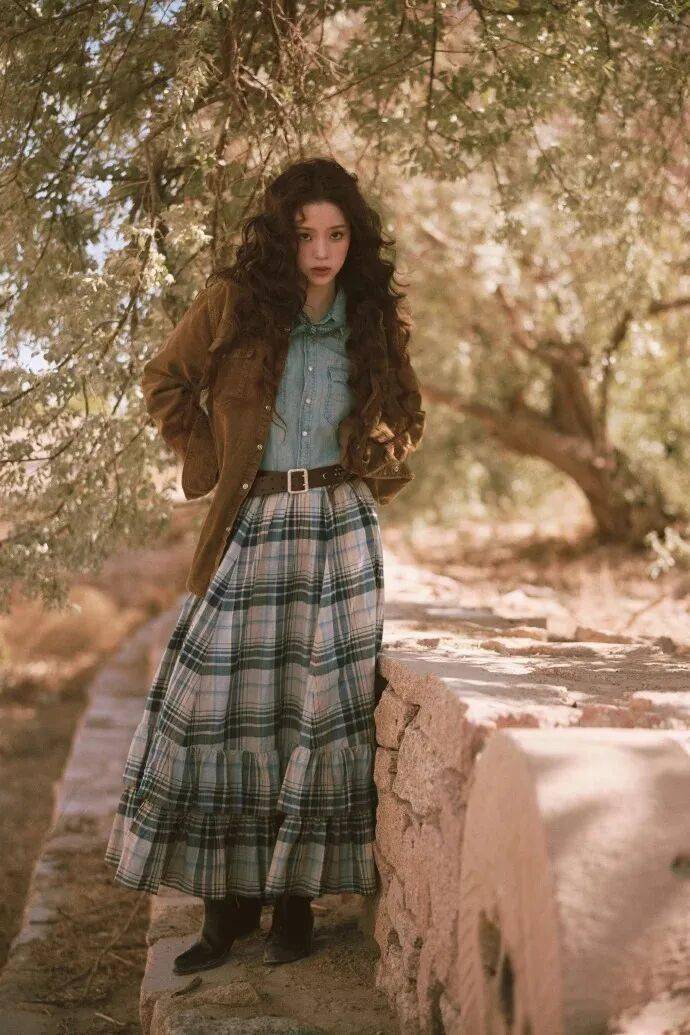 最近,在音乐节上大放异彩的欧阳娜娜也将旷野的自由注入日常穿搭,深棕夹克搭配复古做旧的格纹裙尽显不羁与浪漫,而随风飘荡的羊毛卷像是在无声诉说着诗与远方。