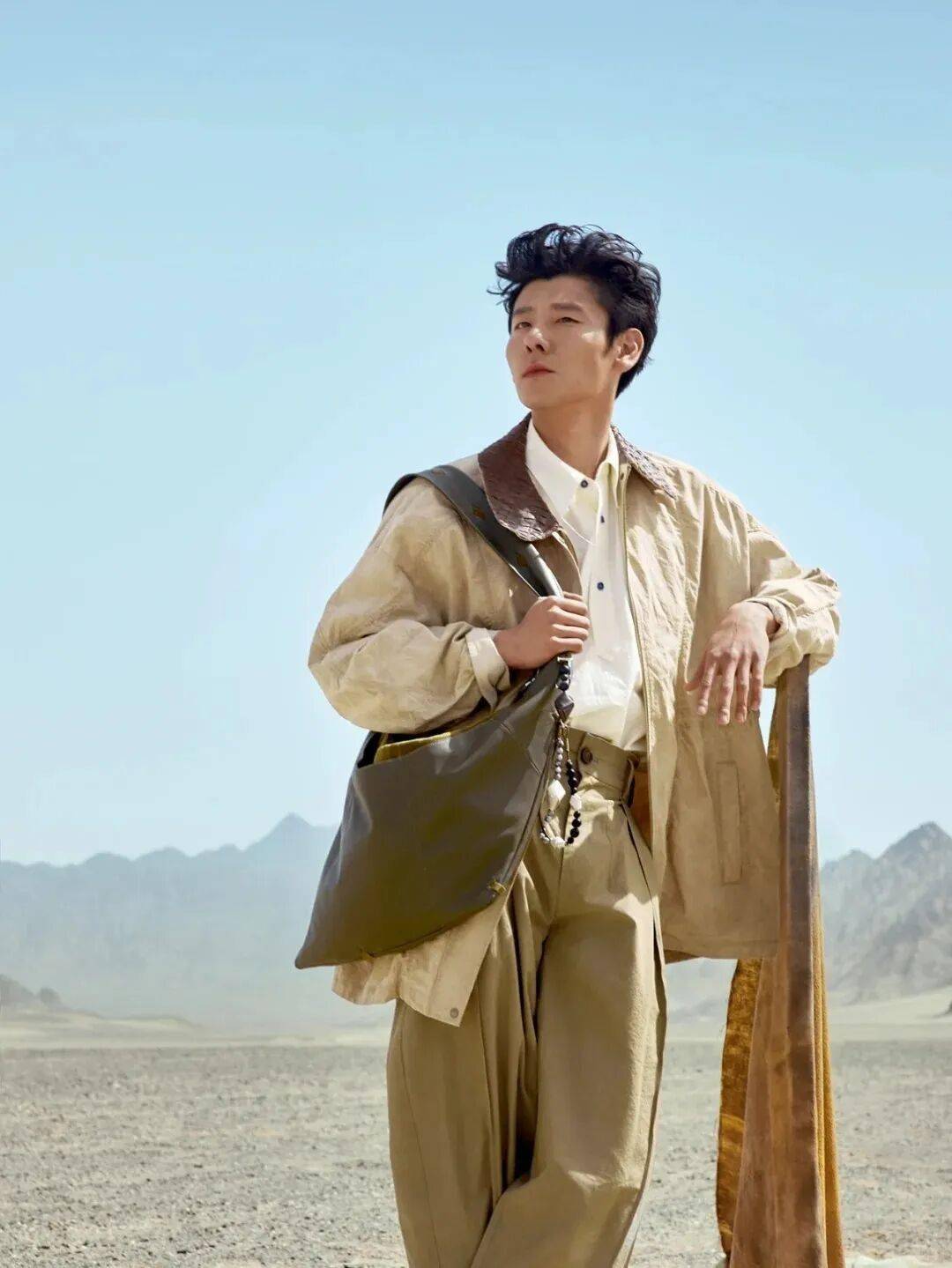 「都市游牧风」的盛行也像是一种精神层面的短逃离,在被钢筋水泥包围的都市寻一角心灵的宁静,使得当下带有游牧色彩的配饰品牌逐渐备受年轻世代追捧。蒋奇明上身了来自品牌山下有松的挎包,都市的摩登质感加之游牧的野性元素,让装束显得自然又高级。