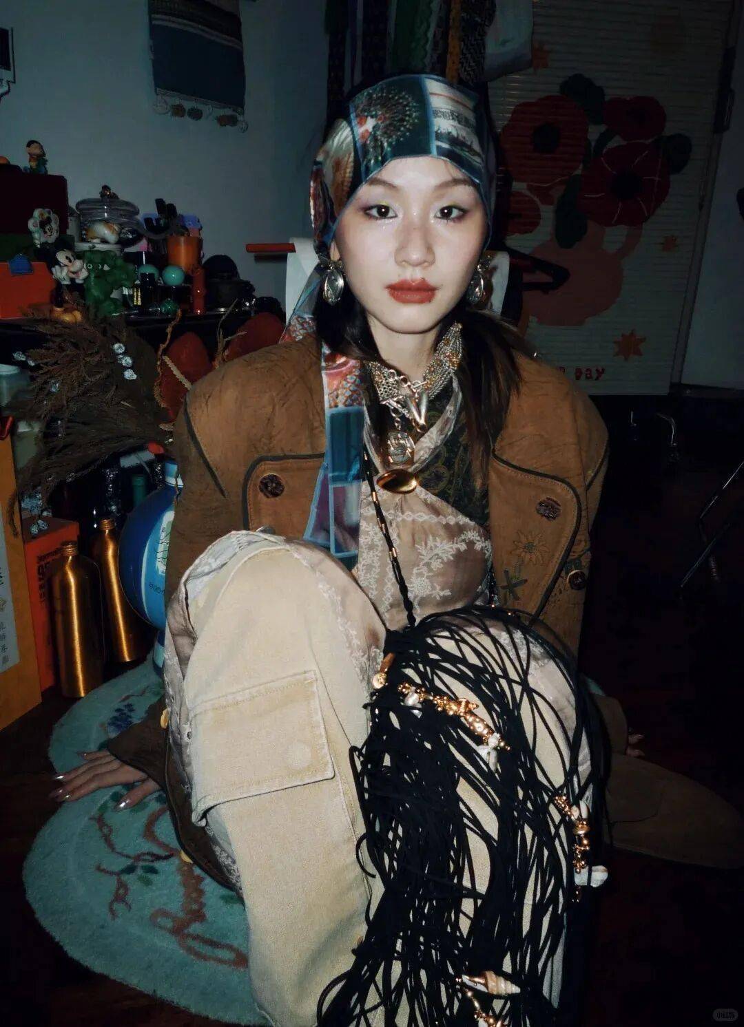 带有传统色彩的游牧民族风单品也悄然加入到年轻群体的衣橱,游牧风、新中式与青年文化在碰撞交织中产生全新可能。庄达菲在大理之旅中的这身造型有种洒脱率性的天然韵味,而民族风配饰则给整体装束带来了意料之外的时髦感。