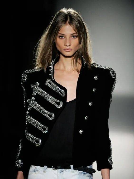 进入 20 世纪,它开始脱离单纯的制服功能,成为舞台、音乐与流行文化的一部分。经典流行文化图像里,把这类军装外套与权威、戏剧、表演联系在一起——当它被穿上,便不只是为了实用,而是为了“表演”,为了视觉冲击。拿破仑夹克已经不只是军装,而是“带着历史感与仪式感的服装语言”。