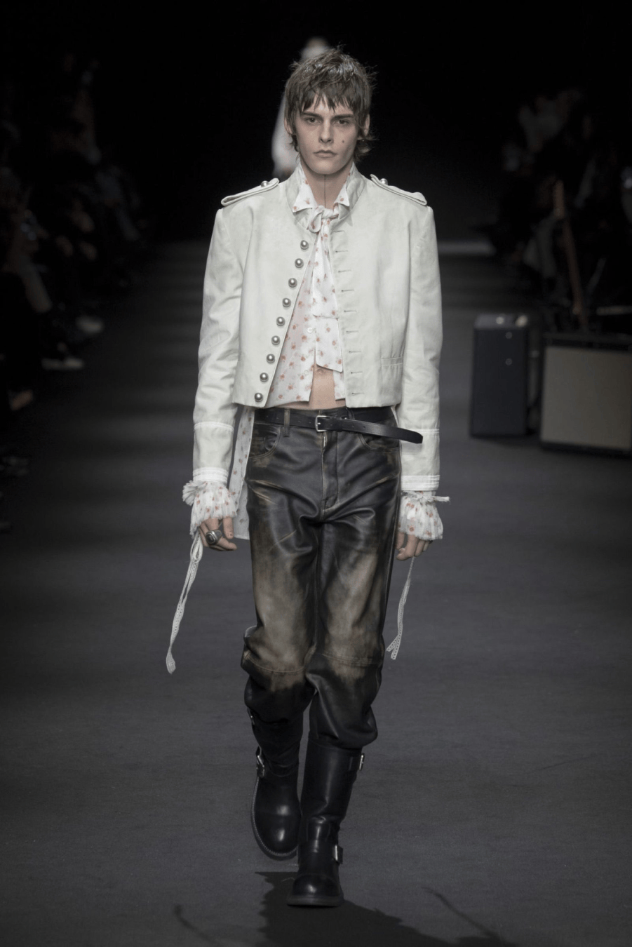 与此同时,Ann Demeulemeester 的 2026 春夏系列也带来了他们对 Napoleonic 夹克的冷静解构:在黑、白、红等色系中,夹克保持双排扣、肩线、扣饰等基本元素,但整体轮廓更柔、更贴近现代街头服饰,也更容易融入日常衣橱。通过这种方式,他们把军装符号从“仪式”“权威”中抽离出来,打造全新美学。