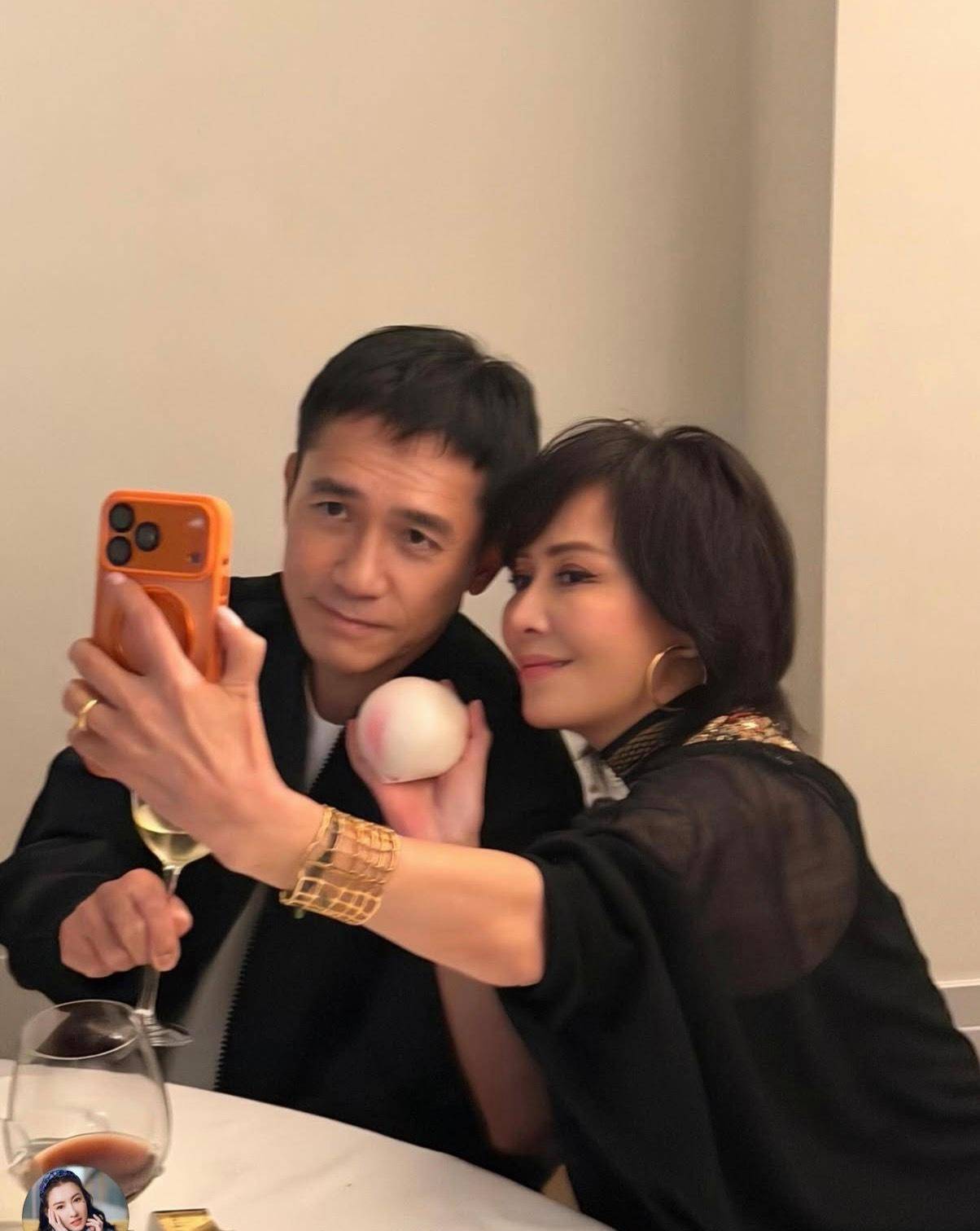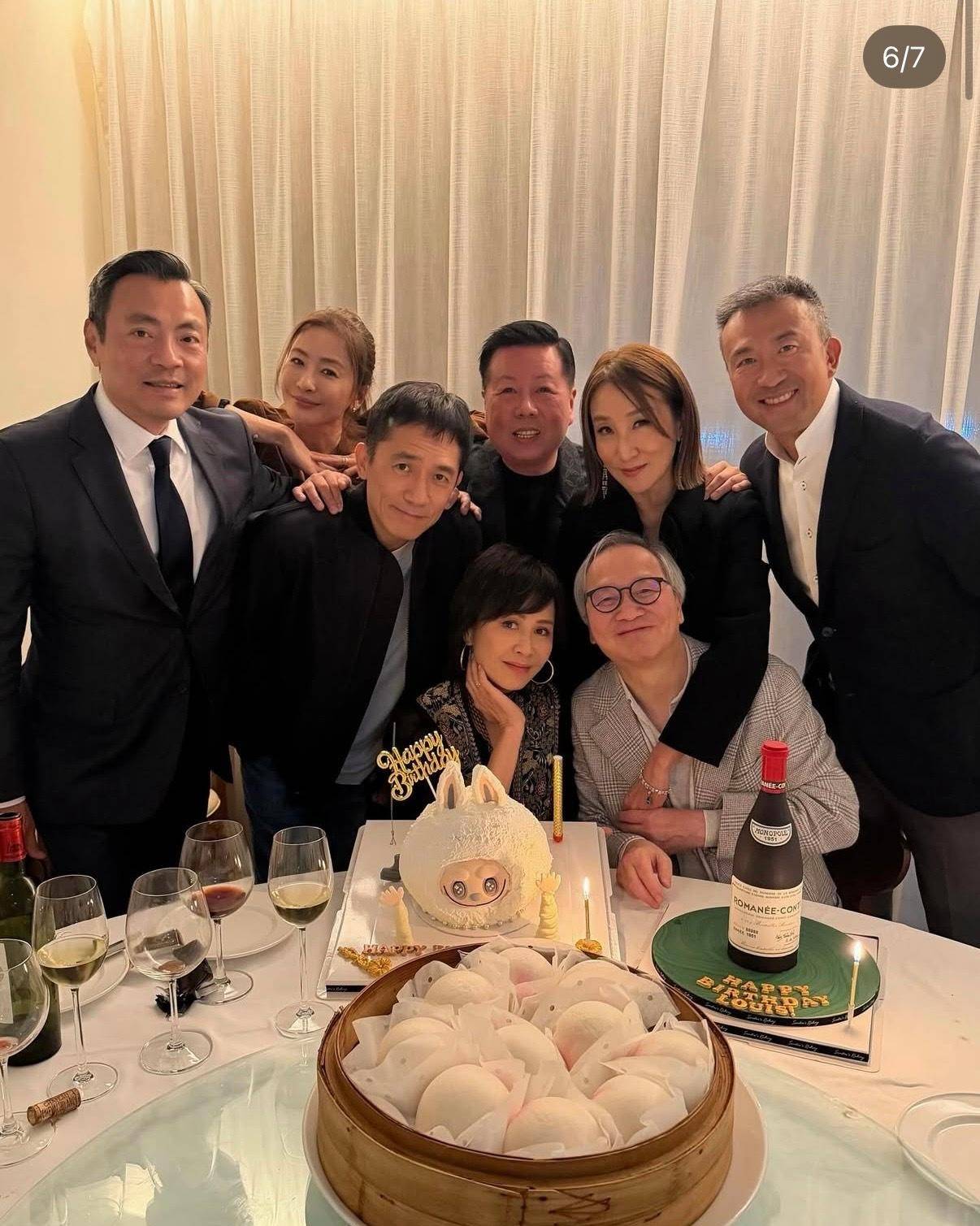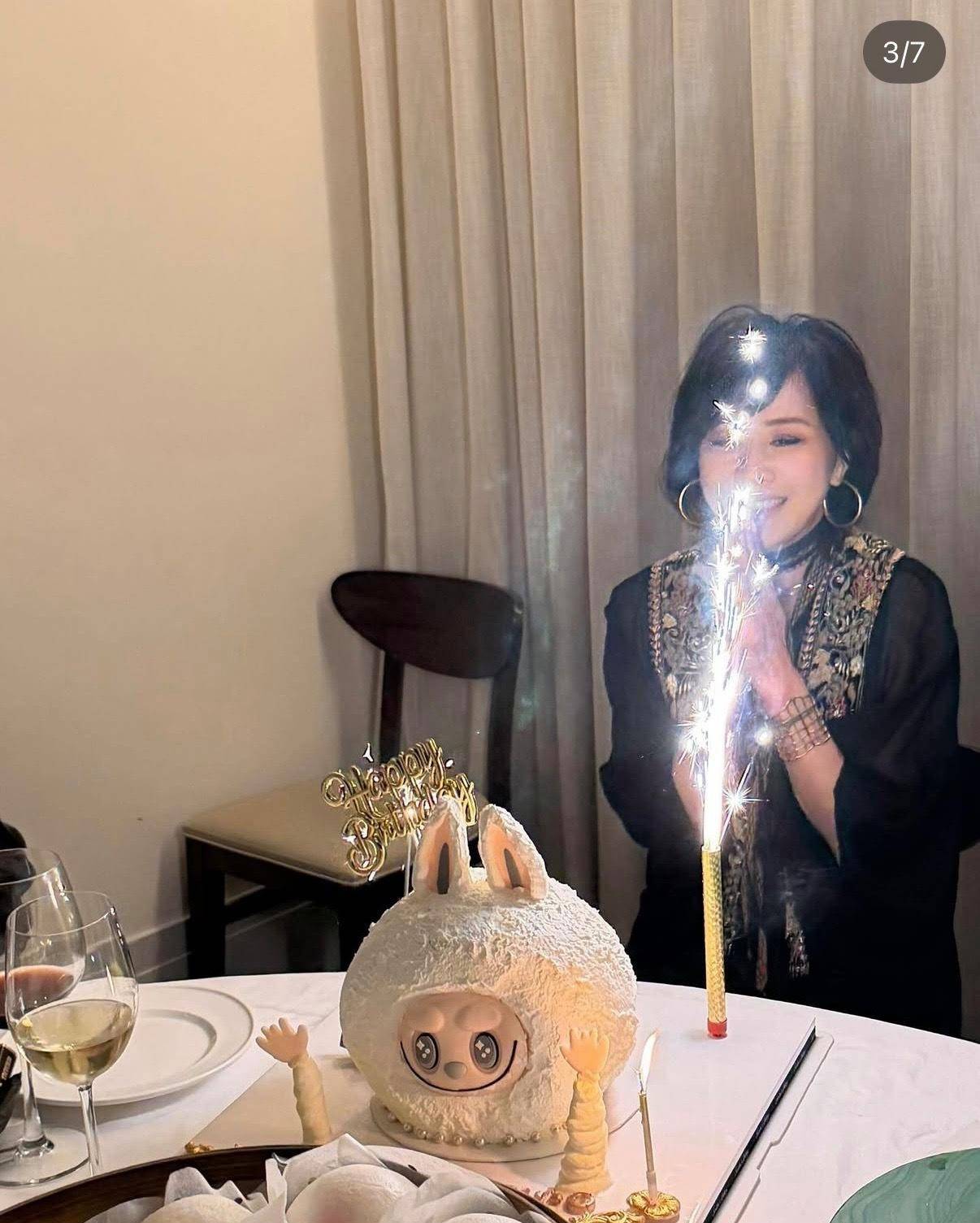 九龙巴士后人家的露台灯火通明,梁朝伟手中的香槟杯折射出二十三年的婚姻光晕。维多利亚港的夜色被半山宅邸点亮。刘嘉玲身着黑色民族风长裙,南洋金珠在领口闪烁。梁朝伟持杯立于身侧,Labubu蛋糕上的烟花正在绽放。
