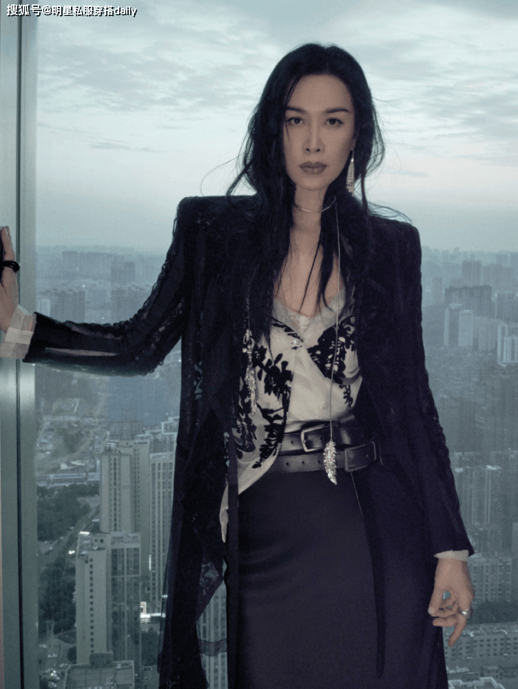 鱼尾半身裙对于个子高挑的女生来说,简直是显高神器!那英身上这款高腰设计的鱼尾裙,搭配了黑色腰带,衬衫一边塞进去,一边松散露出来,领口露出白色蕾丝,性感又迷人!