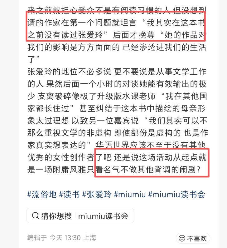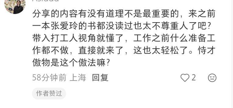 但对于明星的摆拍,网友还能理解,她们本就是负责当花瓶的,奇怪的是这次请来的对谈嘉宾也是一副脑中空空的样子,有一位嘉宾连张爱玲的书都没有读过。