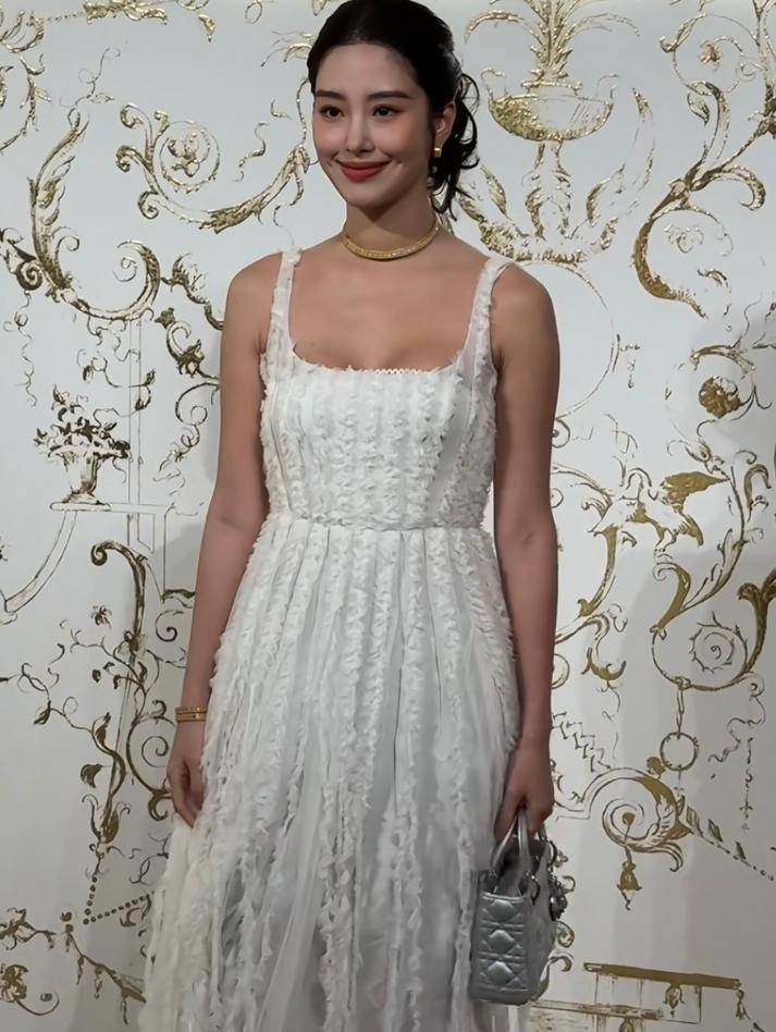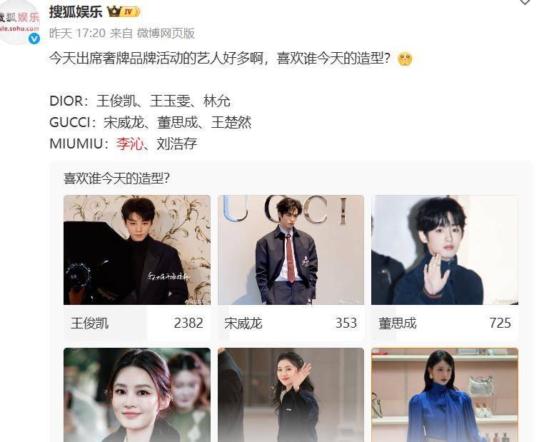 同场的王玉雯比她年轻,状态也比她好,但是在一些生图下,能看出她的面部明显不够流畅,她和品牌的消费客户一起合影时,感觉状态还不如客户,有些瑟瑟缩缩。