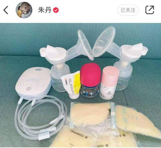 没过几年,二胎儿子落地,朱丹晒吸奶器照,调侃臭小子来了。
