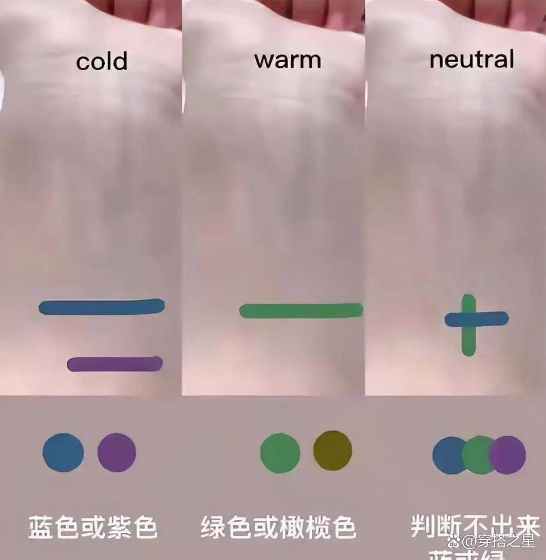 就比如,肤色如冷白皮一般,不擦素颜霜都很白皙,就会很适合蓝色和紫色,而若是有一点偏黄皮,但并不黑,那绿色和橄榄色则就是你的“菜”。